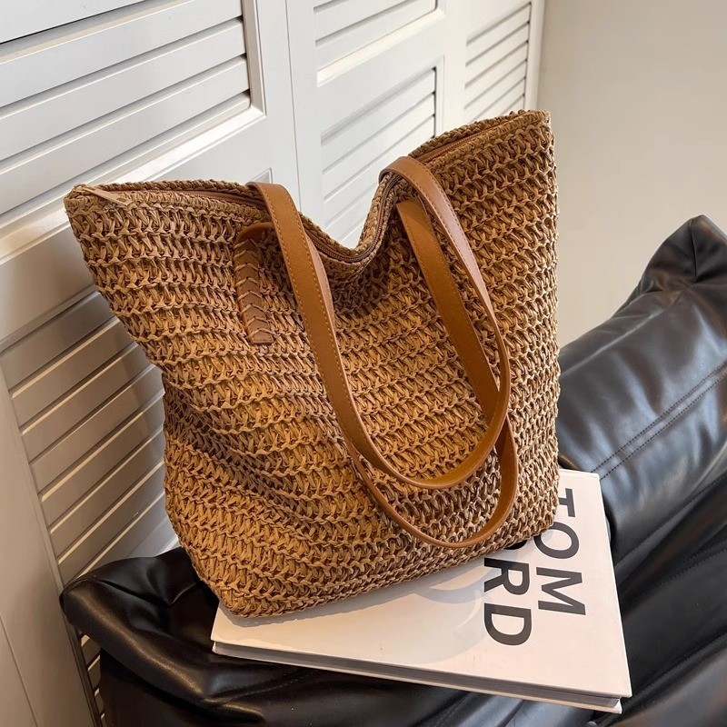 夏季大容量通勤包包女2025新款洋气草编单肩包海边沙滩编织托特包
