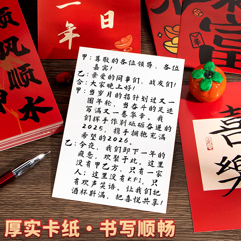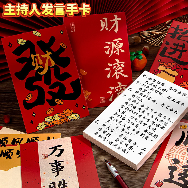 马年新年节目晚会主持人台词手卡公司开年会演讲庆典婚礼红色司仪专用背面空白可手写字儿童小学生小卡片加厚