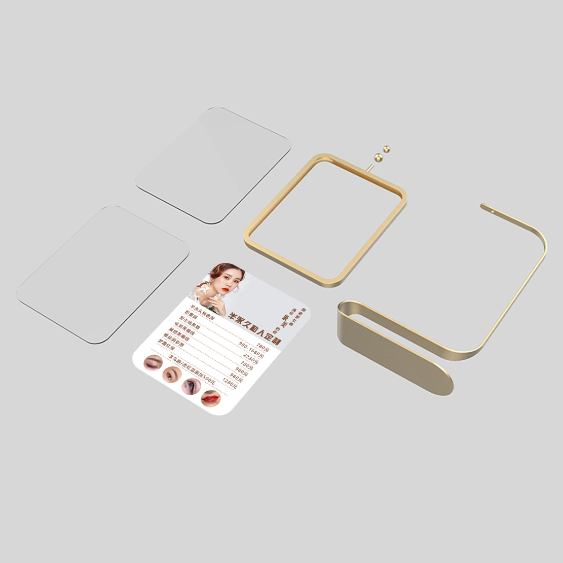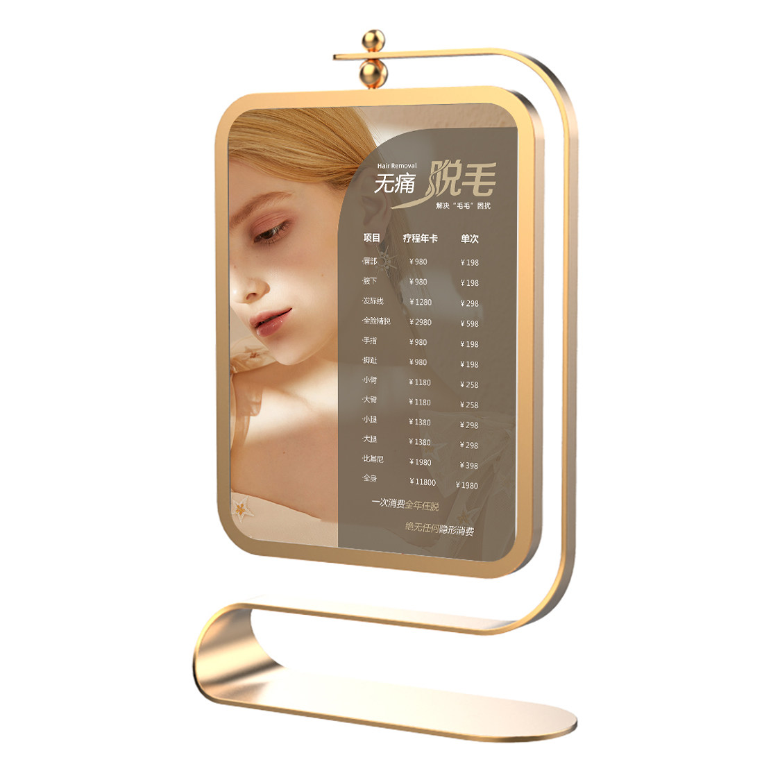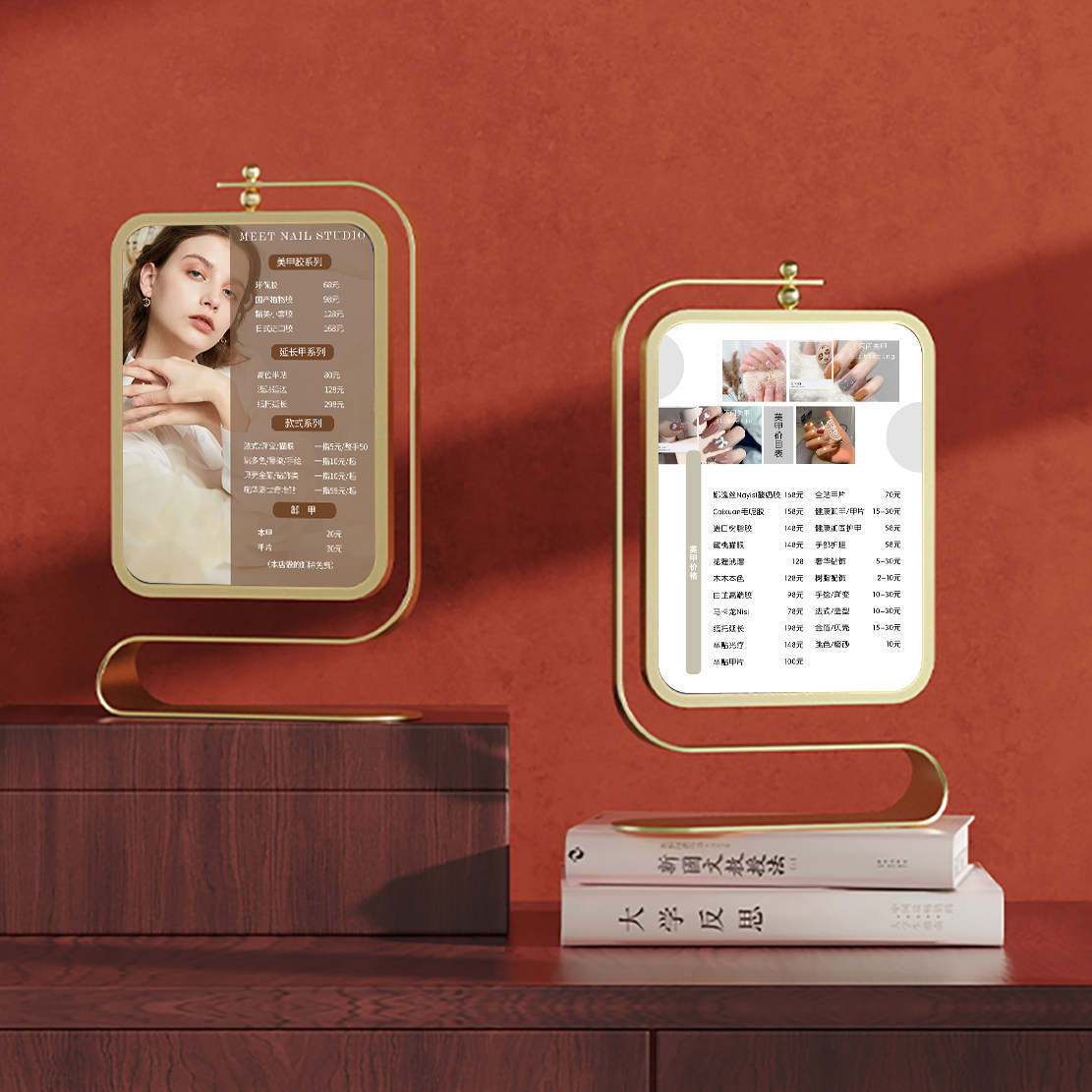 美容院皮肤管理价格表金属摆台双面美甲价格金色旋转相框摆台定制