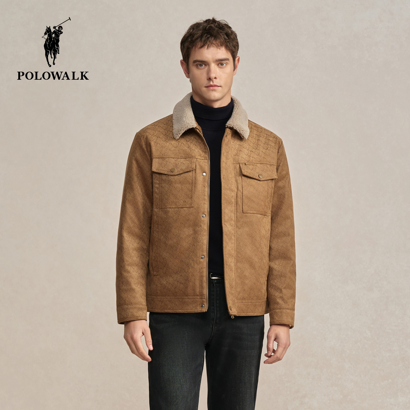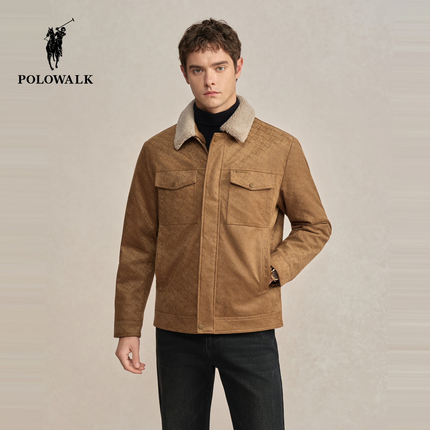 POLOWALK男式皮衣2025冬季新品男装复古羽绒翻领休闲皮衣外套夹克
