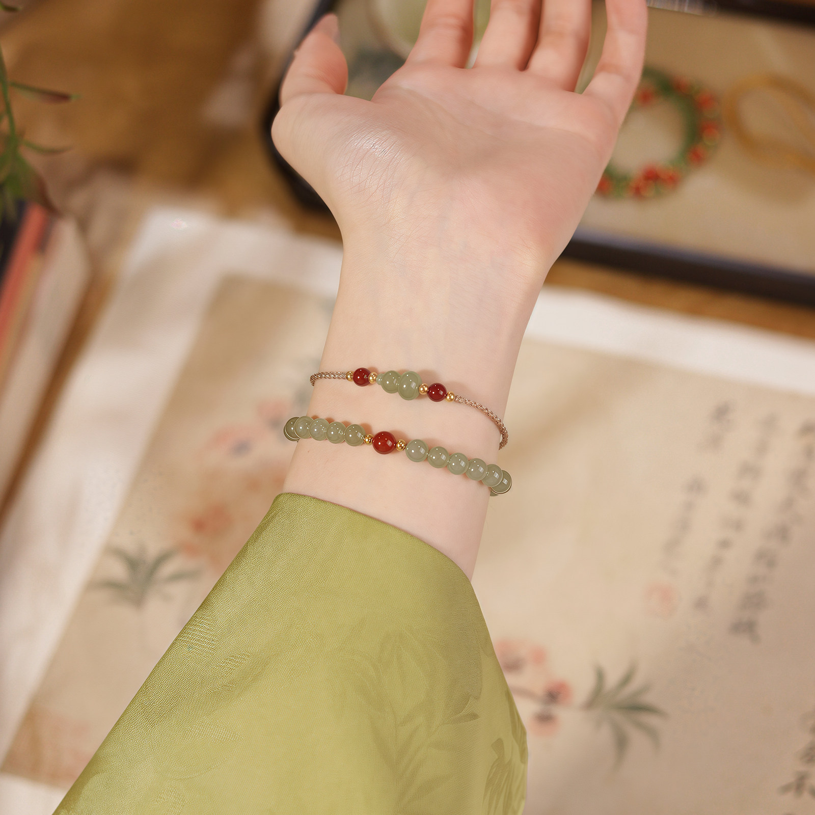 轻奢小众设计方糖莲花串珠手链女新中式精致闺蜜手饰转运珠送女友