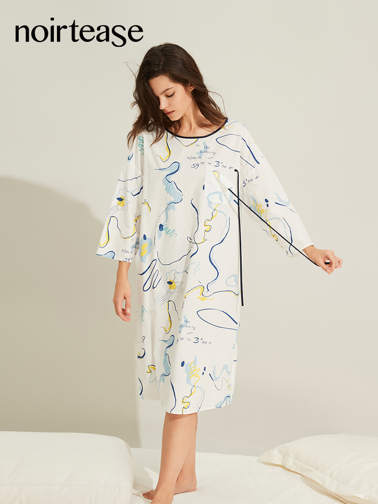 NoirTease奈黎诗春夏凉感薄款纯棉睡裙女长款大码睡衣家居服外穿