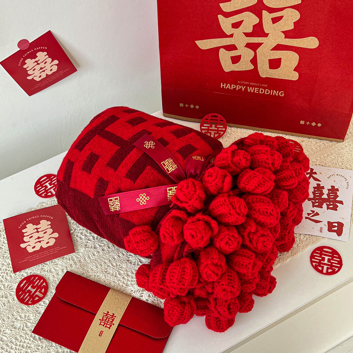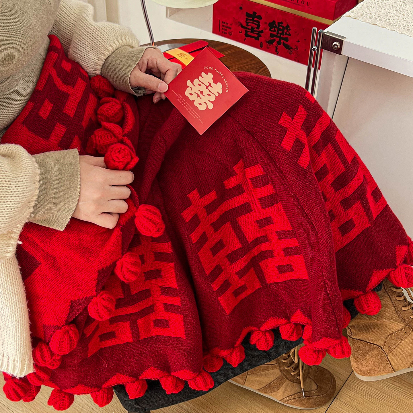 结婚礼物新婚百喜毯送新人高级实用送新娘订婚闺蜜玫瑰花毯子毛毯