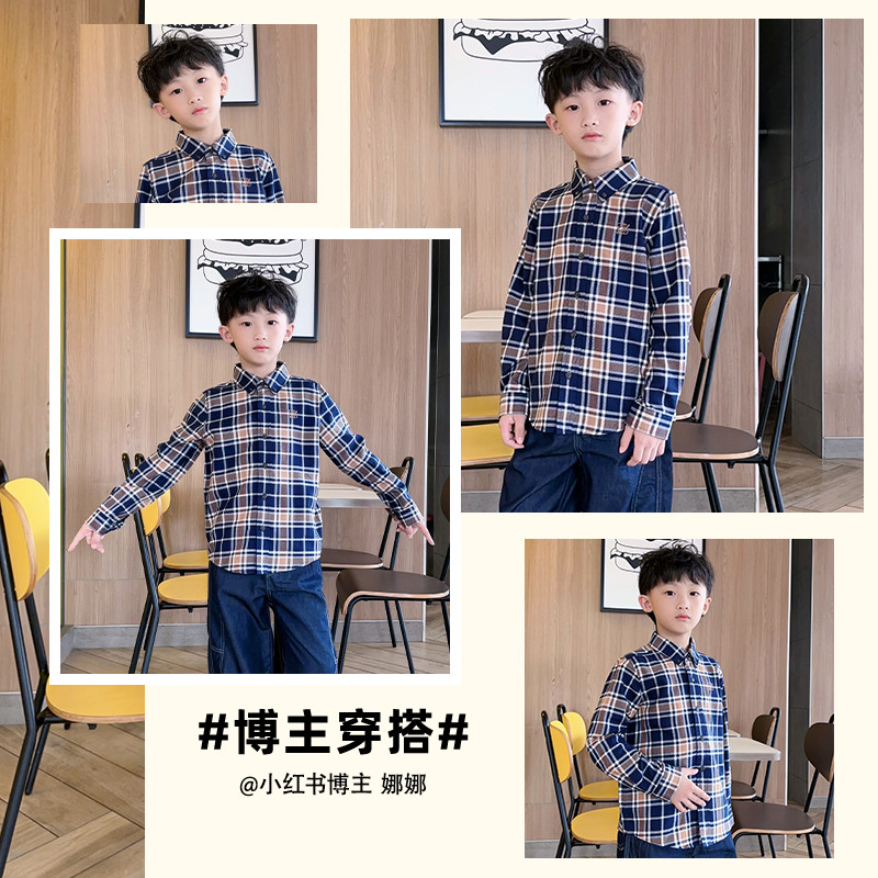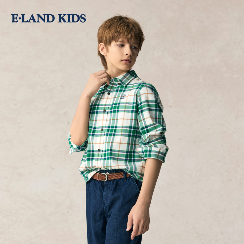 eland kids衣恋童装女童格子衬衫25年秋新品男童外套复古休闲学院