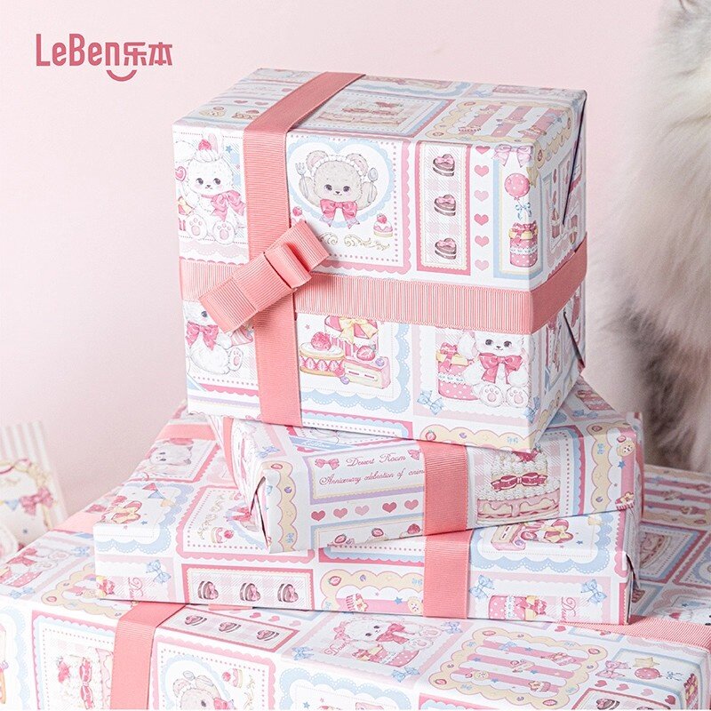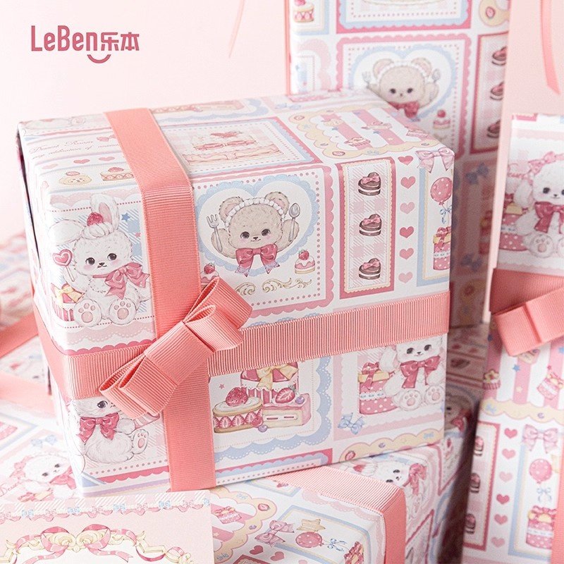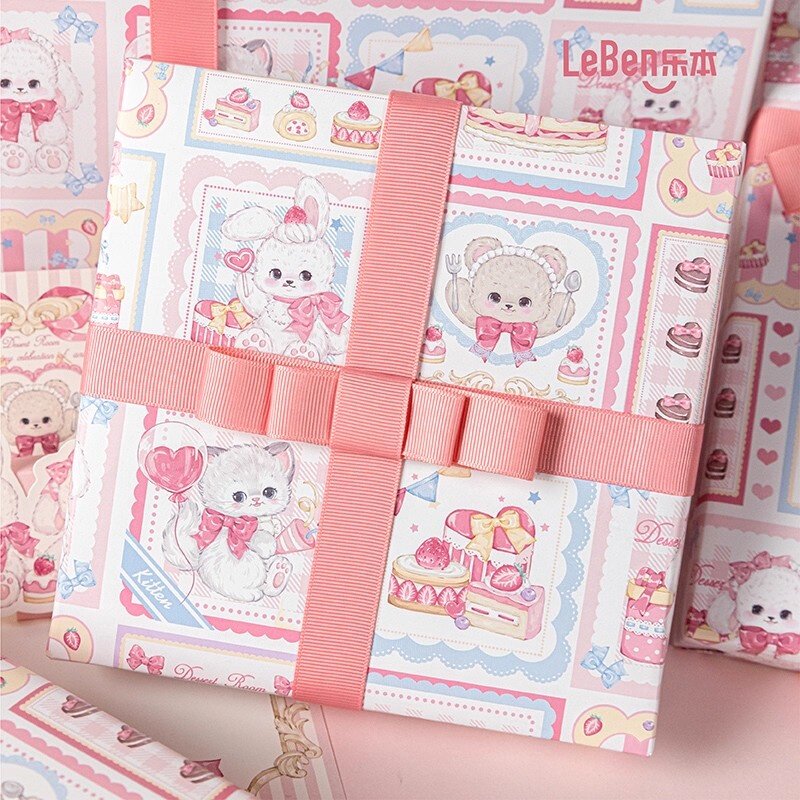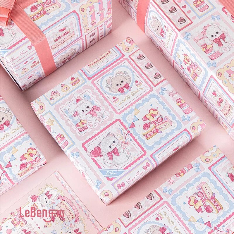乐本·甜甜茶话会原创包装纸儿童节猫咪小兔礼物礼品纸包书皮纸生日礼盒包装材料大尺寸可爱花束打包纸装饰纸
