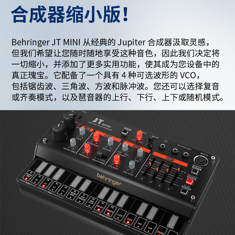 Behringer/百灵达 JT MINI复音模拟合成器VCO多模式VCF