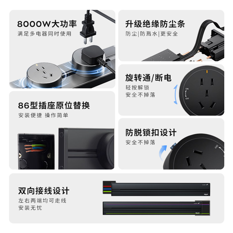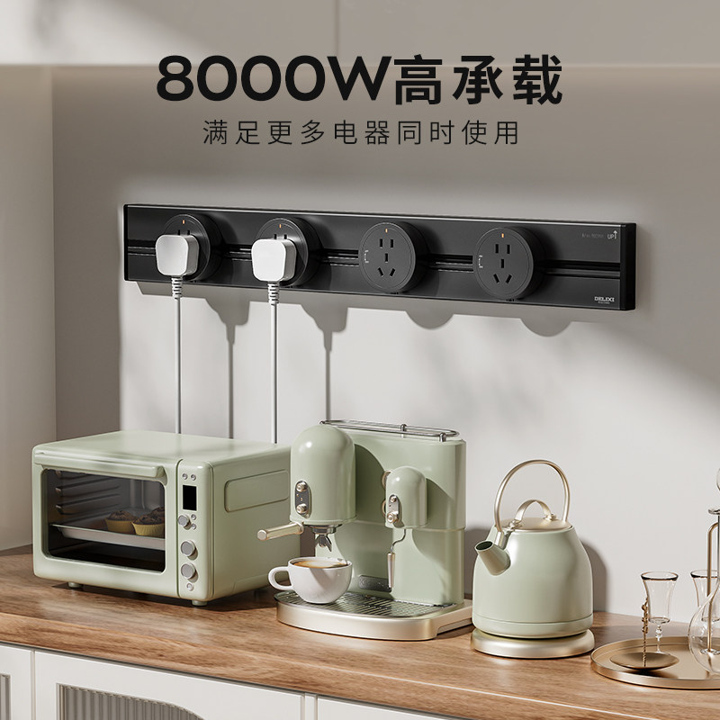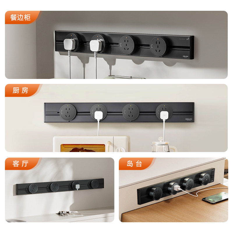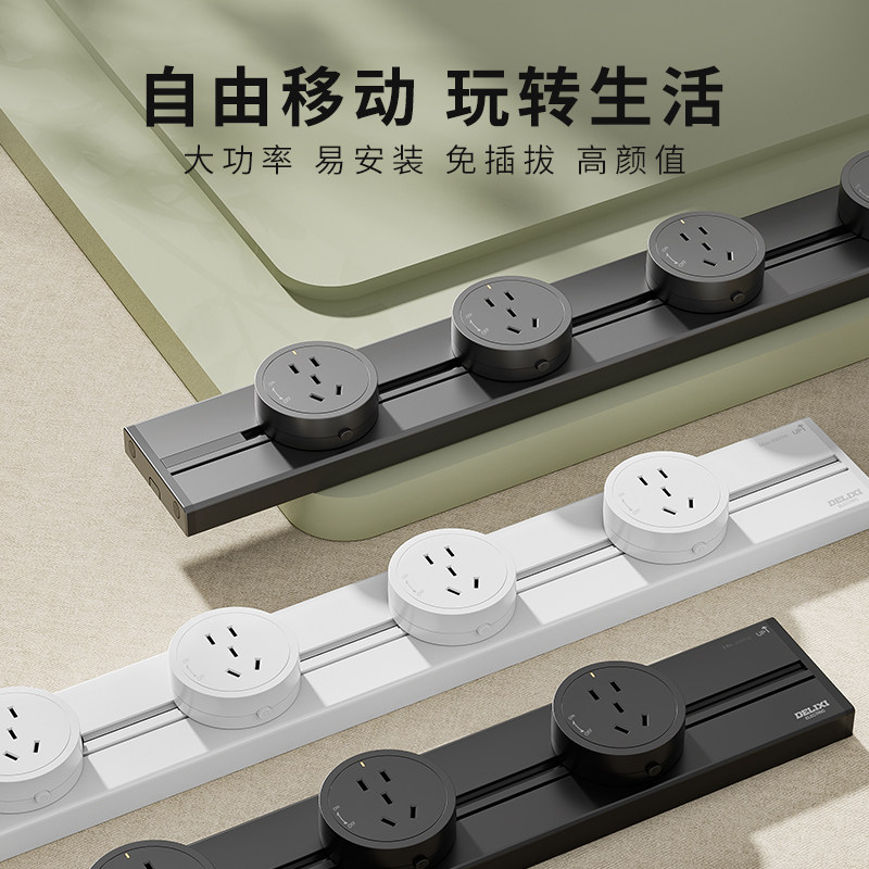 德力西可移动轨道插座餐边柜移动排插厨房客厅导轨电力滑轨插座