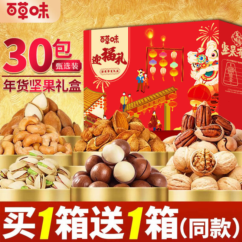 百草味每日坚果礼盒750g干果混合健康孕妇零食大礼包早餐健康果仁