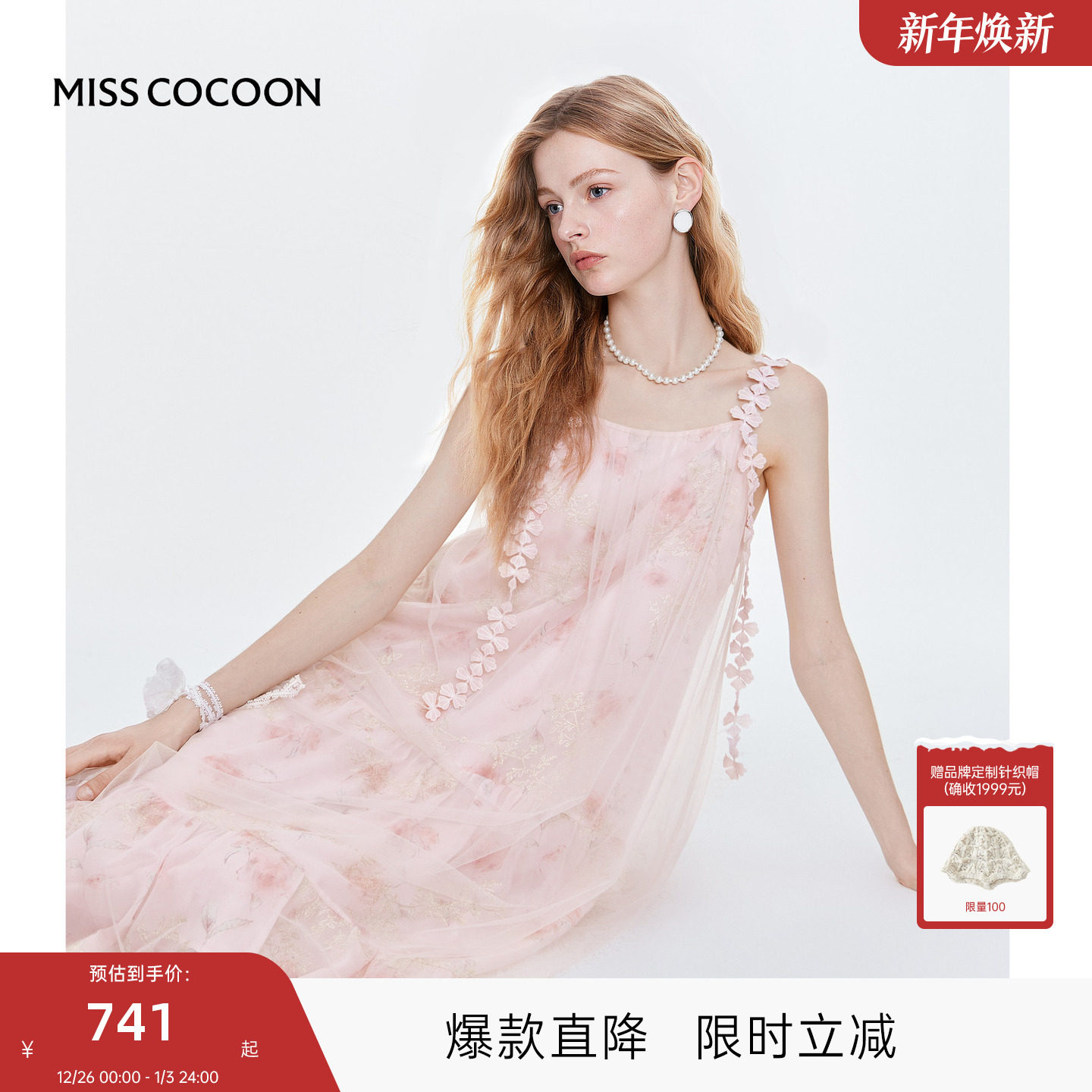 MISS COCOON可可尼网纱吊带粉色裙子2025秋季新款浪漫无袖连衣裙