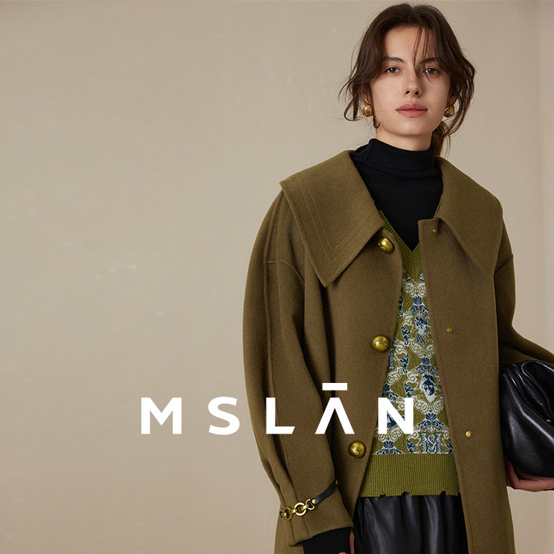 【100%双面呢羊毛大衣】MSLAN中长款大翻领收腰毛呢外套MEDV3309