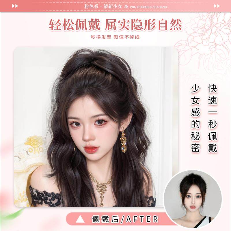 瀑布半扎高马尾假发女抓夹仿真发卷发高颅顶神器长辫子假马尾发型