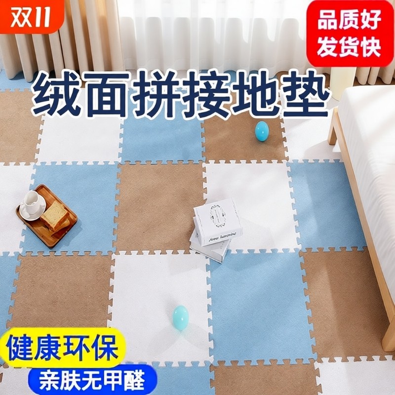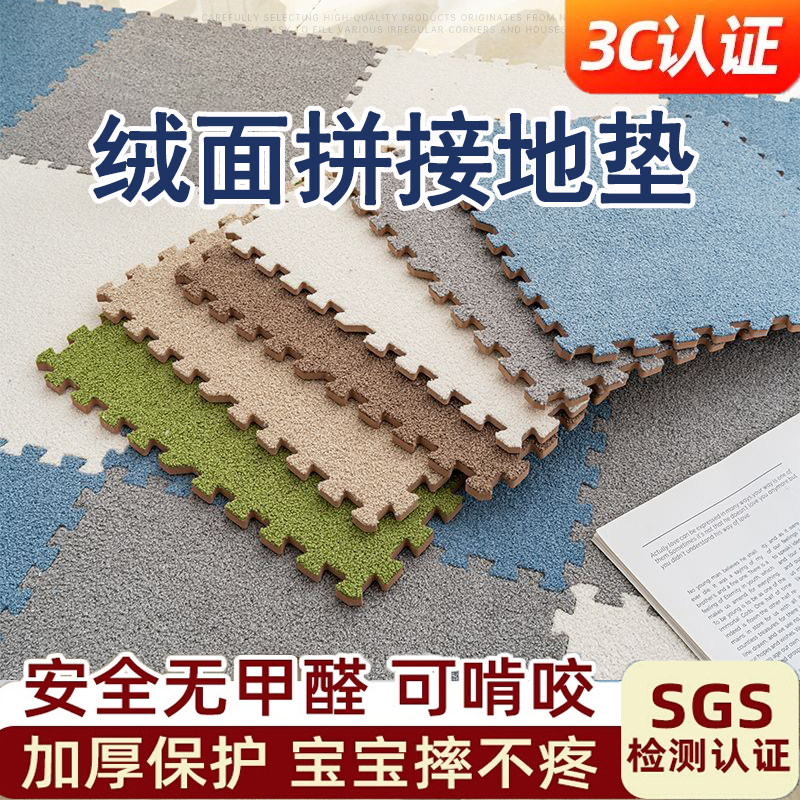 泡沫地垫加厚拼接爬爬垫绒面家用无甲醛爬行垫榻榻米防摔无毒无味