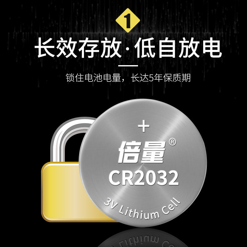 倍量纽扣电池5粒装CR2032笔记本电子秤钥匙遥控器主板直插电池3v