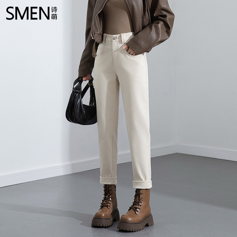 SMEN诗萌秋冬牛仔裤女2026修身小脚裤自然腰修身显瘦哈伦铅笔裤