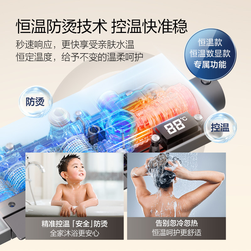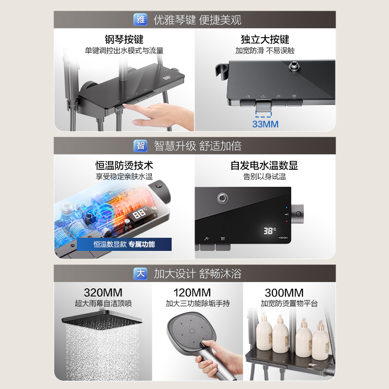 恒洁钢琴按键淋浴花洒卫浴明装家用龙头淋浴器Y55恒温数显款