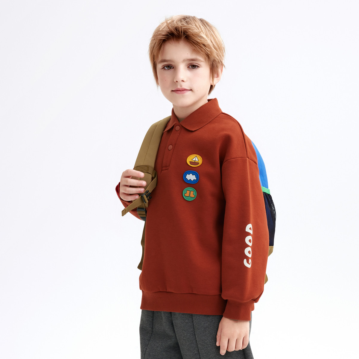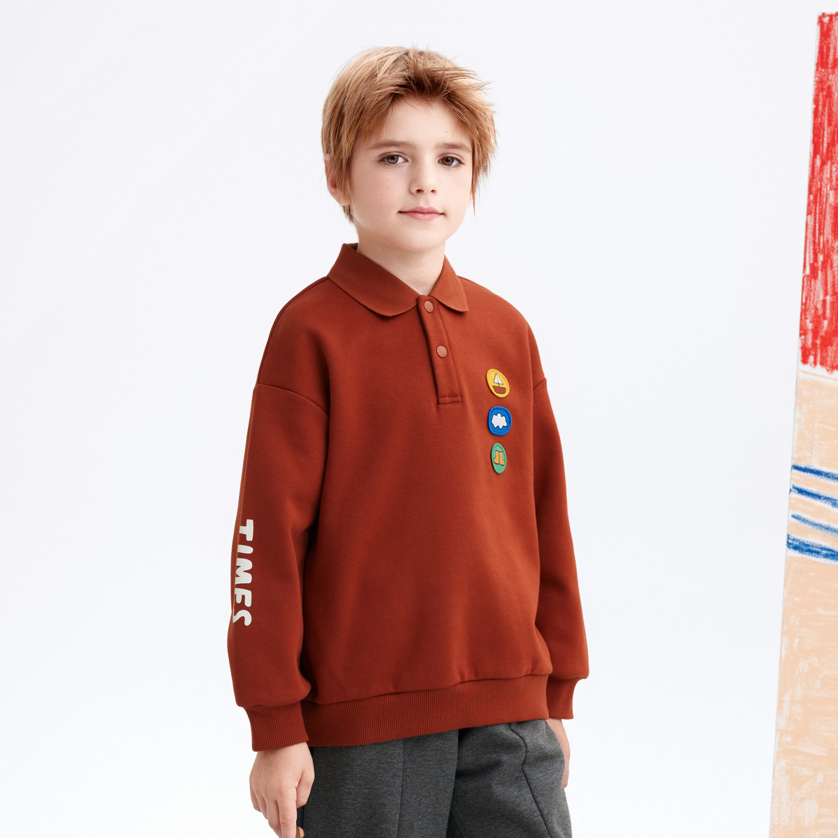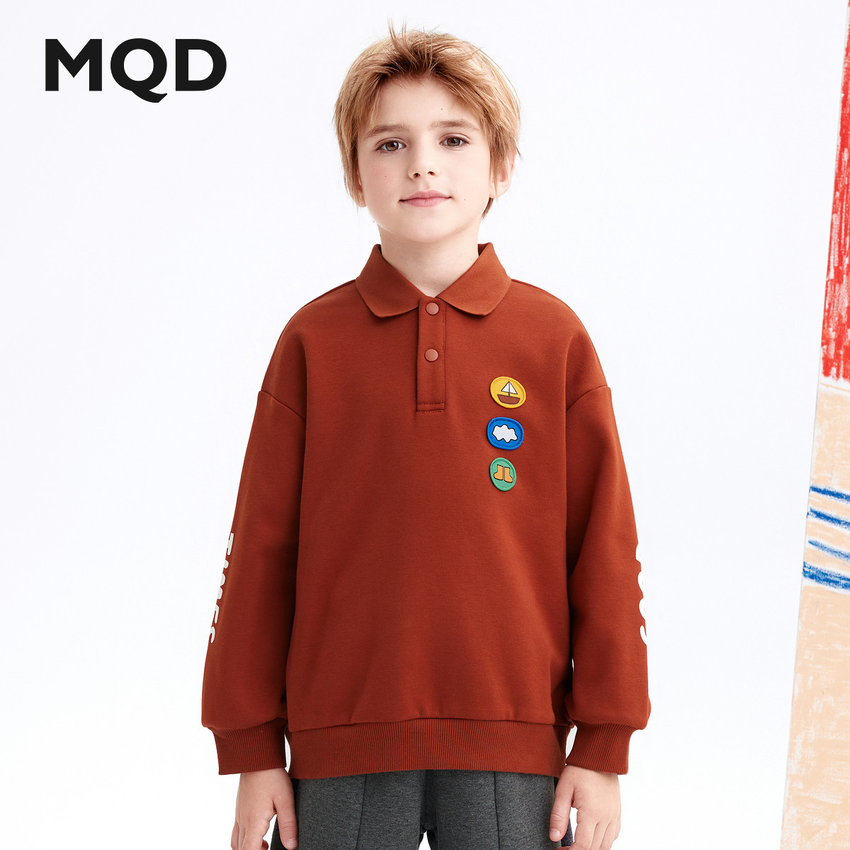 【设计师系列】MQD童装男童加绒卫衣秋冬款儿童长袖红色新年装