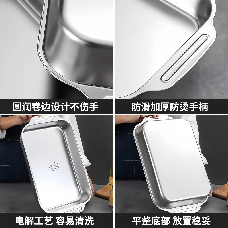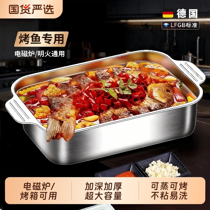 不锈钢烤鱼盘长方形家用316食品级加厚电磁炉烤鱼专用烤盘子不粘