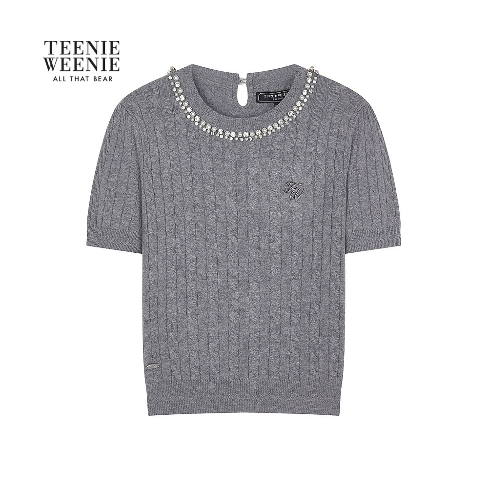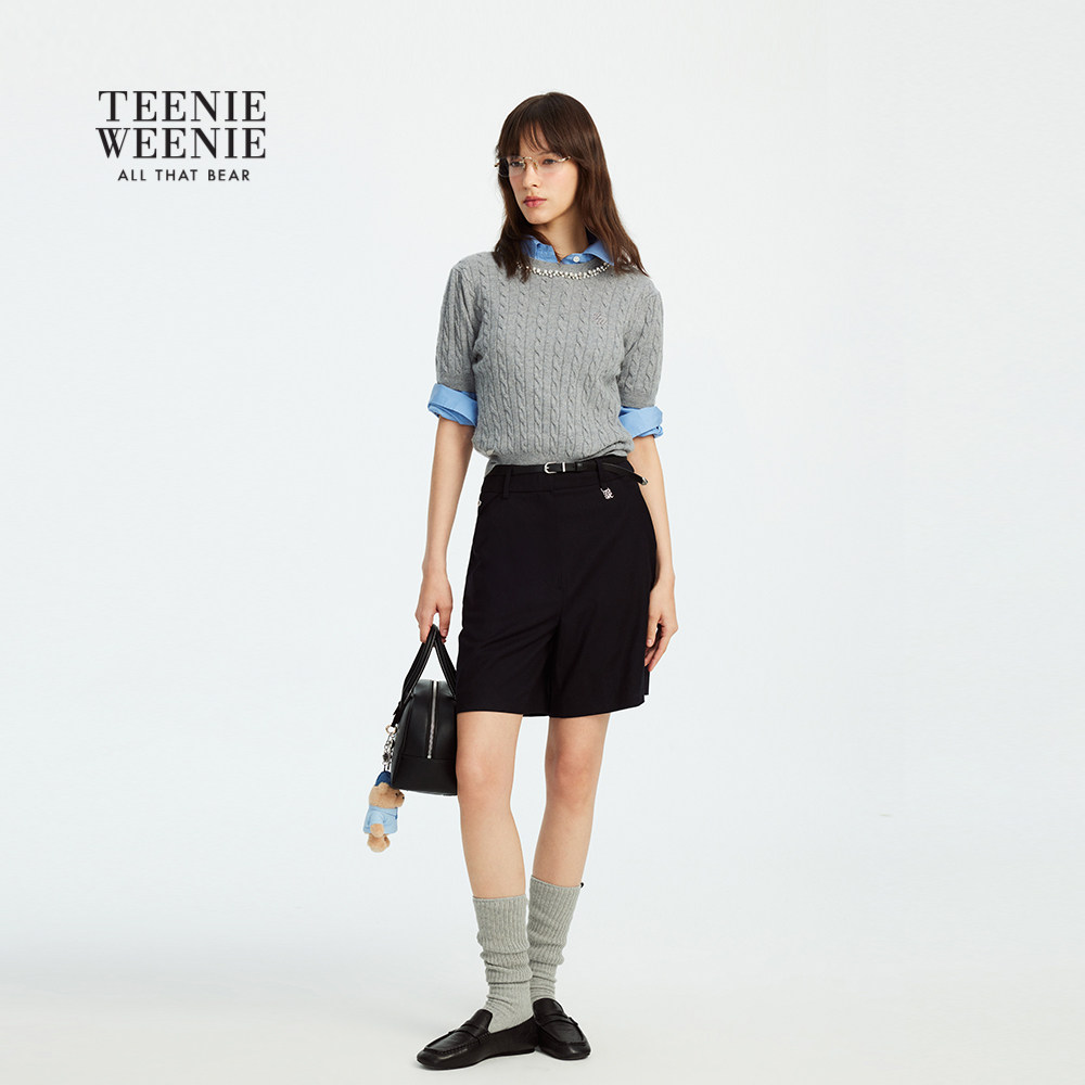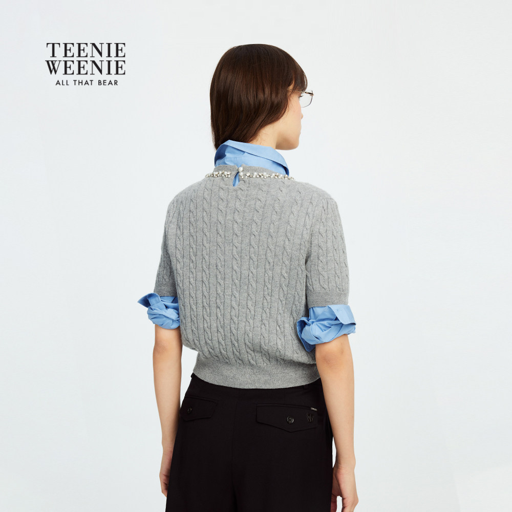 【含三醋酯羊绒羊毛】TeenieWeenie小熊女25秋款绞花轻薄短袖毛衣