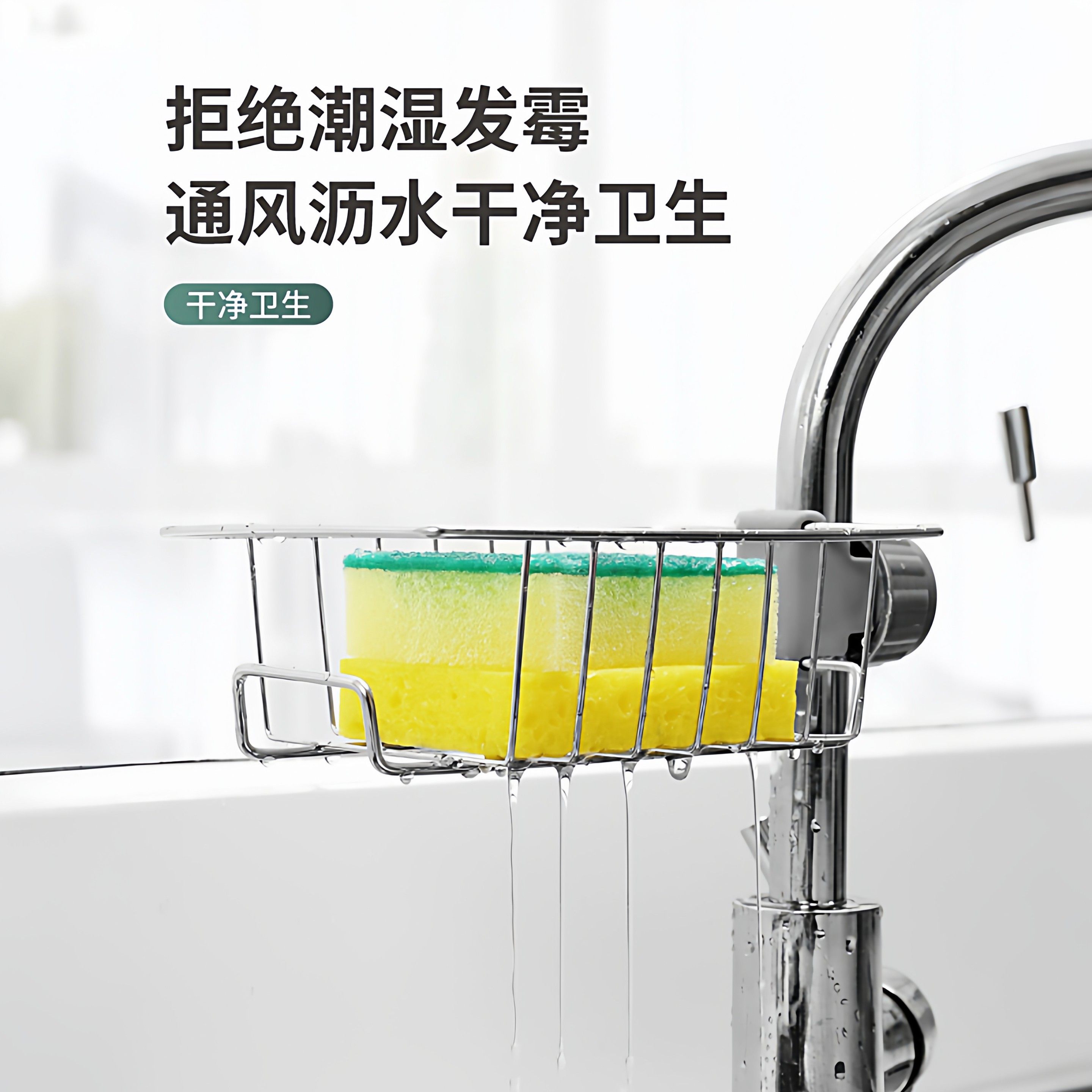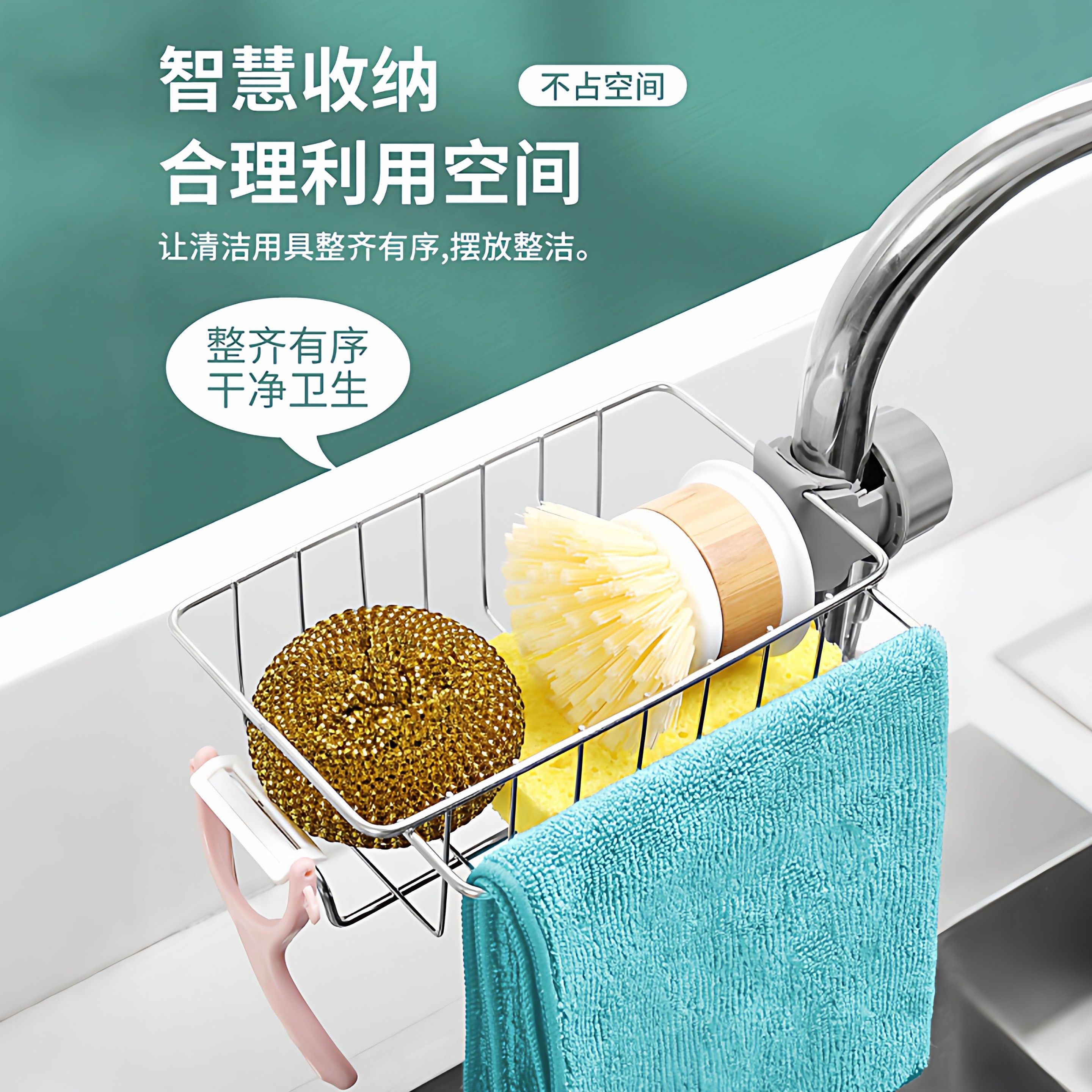不锈钢厨房水龙头置物架洗碗水槽架沥水篮海绵刷百洁布抹布收纳架