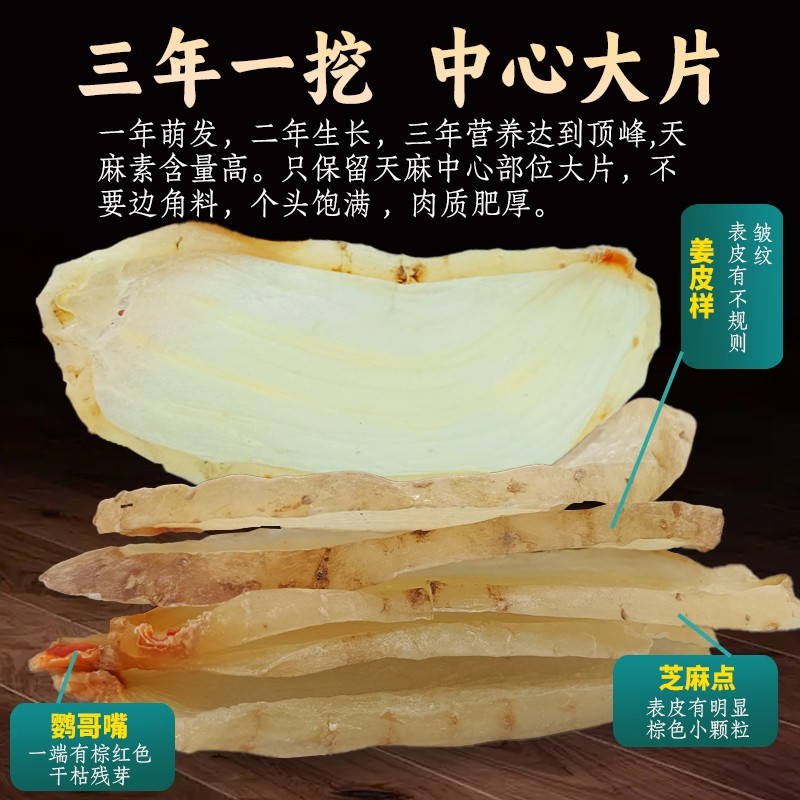 正宗云南天麻片干货250g非野生中药材正品官方旗舰店无硫新货新鲜