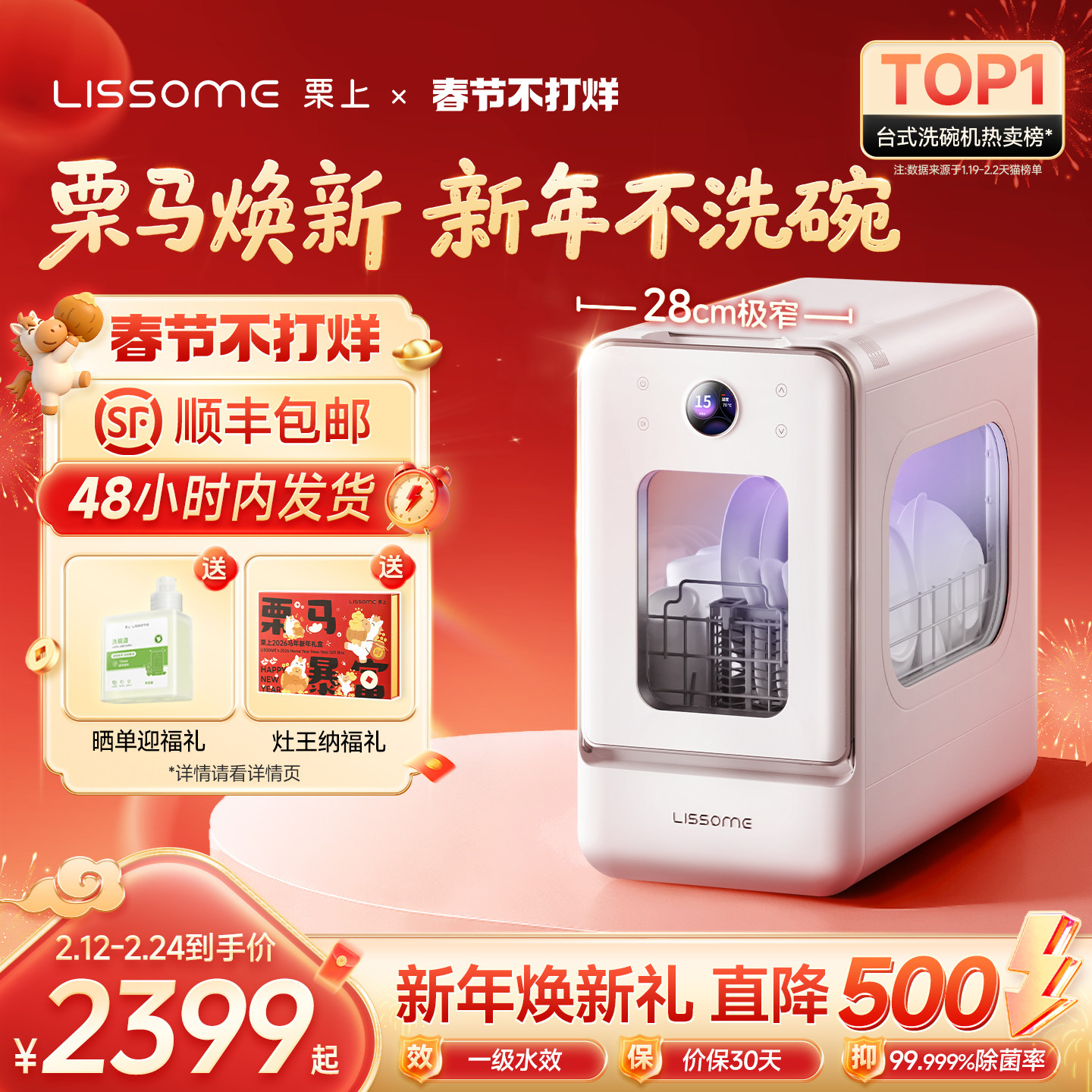 栗上28㎝极窄台式洗碗机一级水效15分钟快洗