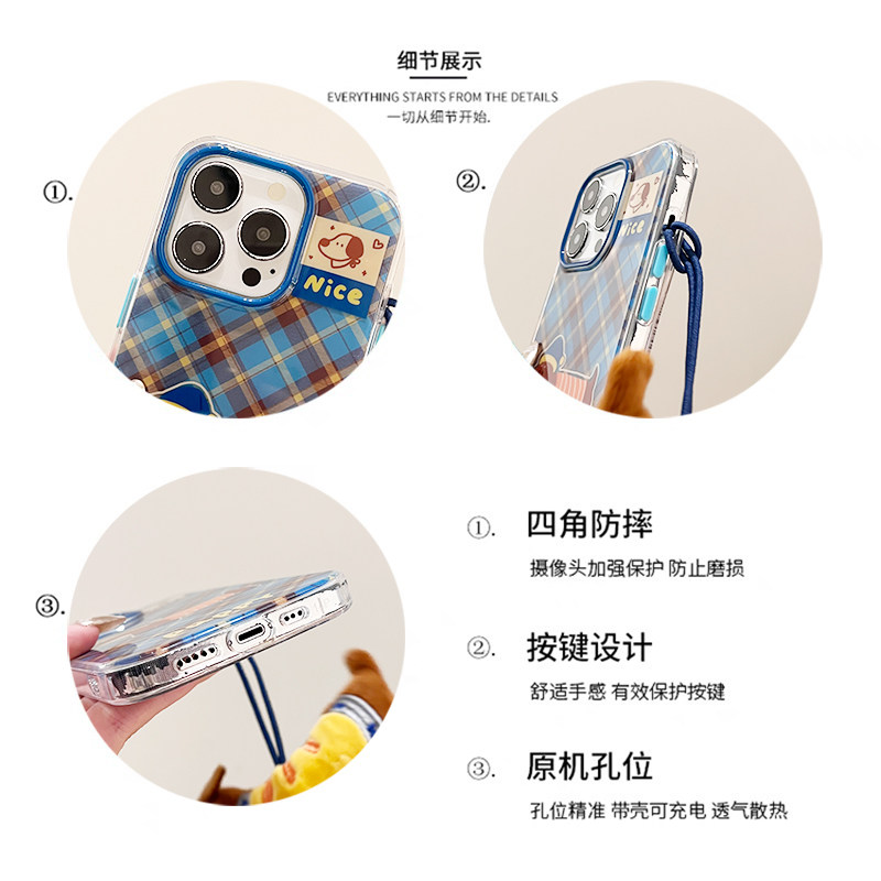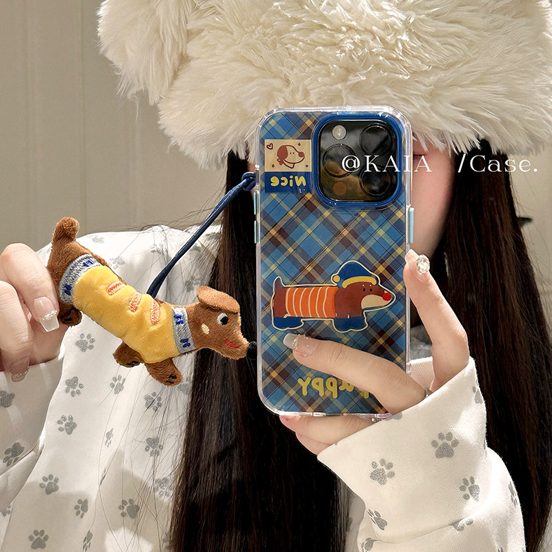 kaia 秋冬卡通菱形腊肠狗适用苹果16promax手机壳iphone13新款13公仔挂绳15女15promax双层16pro创意手机壳软