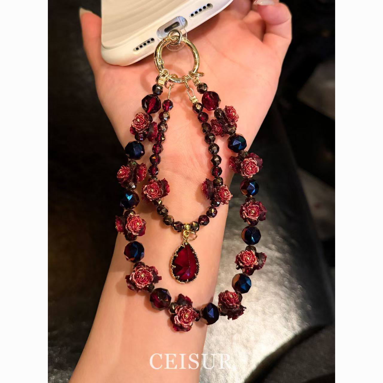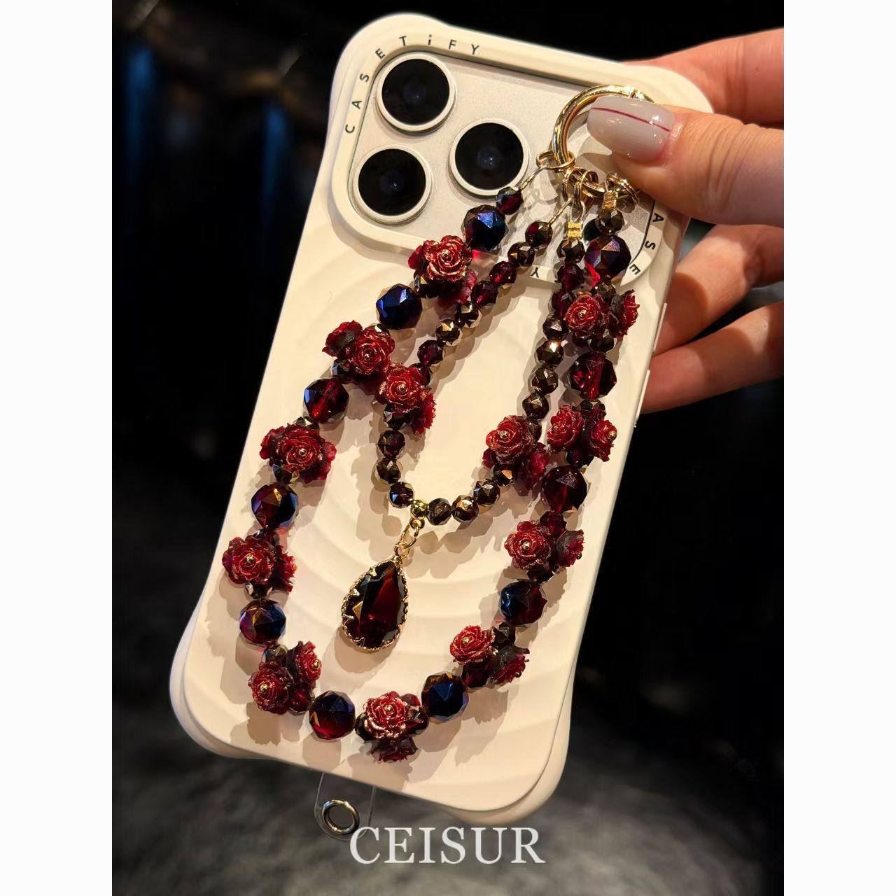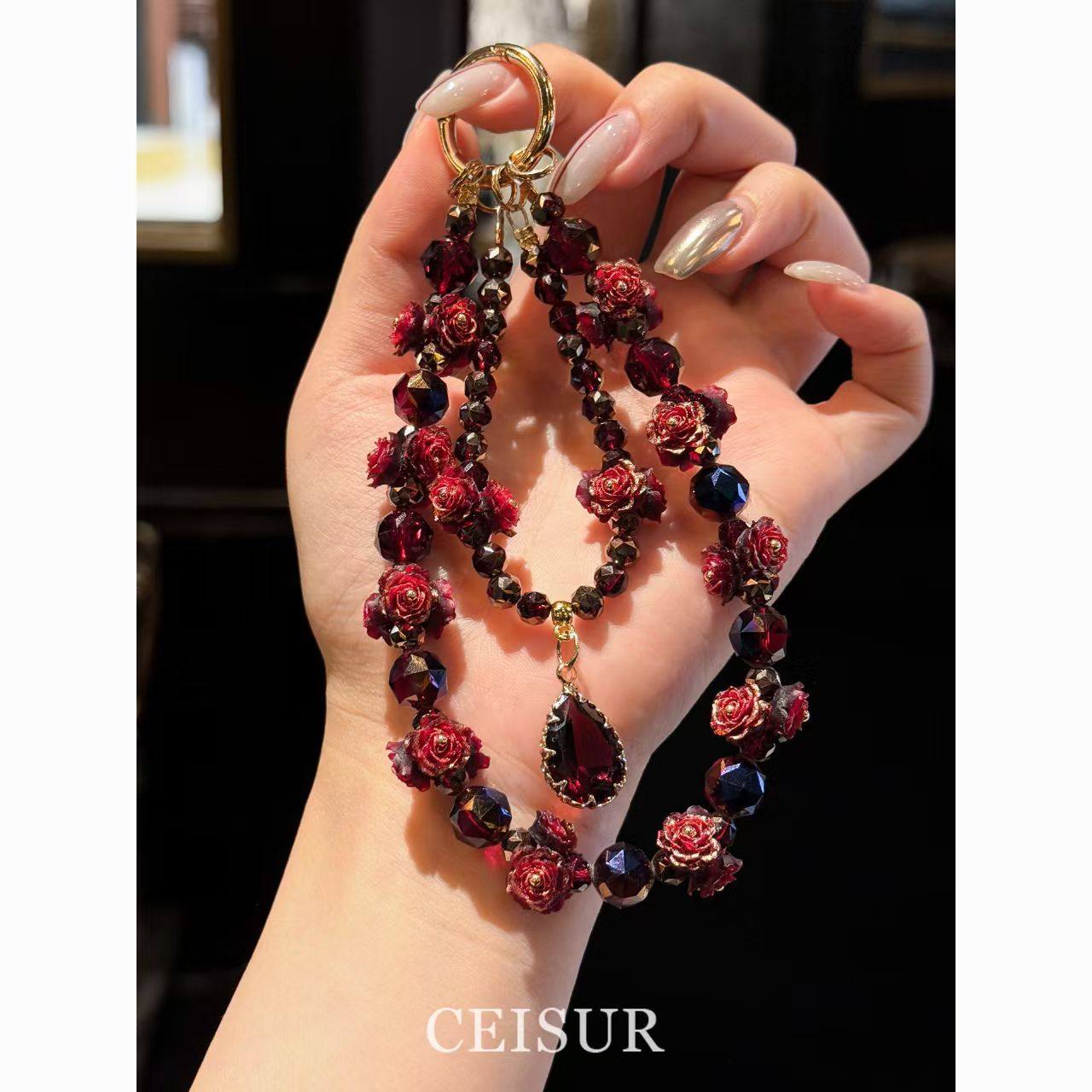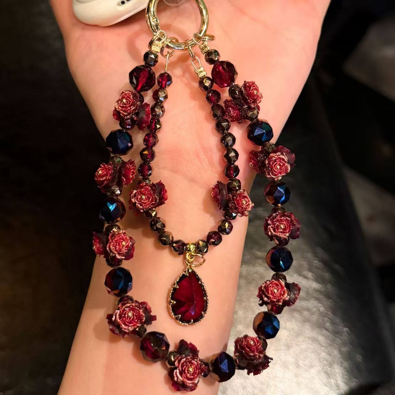 【复古玫瑰】高端奢华红色玫瑰串珠手机链挂件新年DIY饰品配件