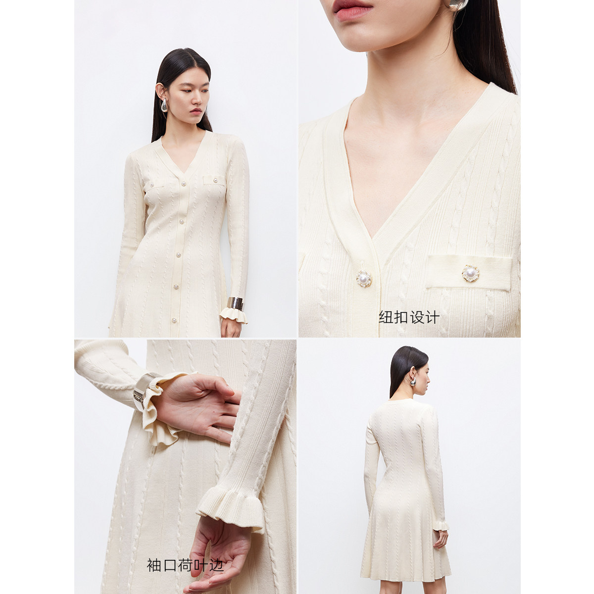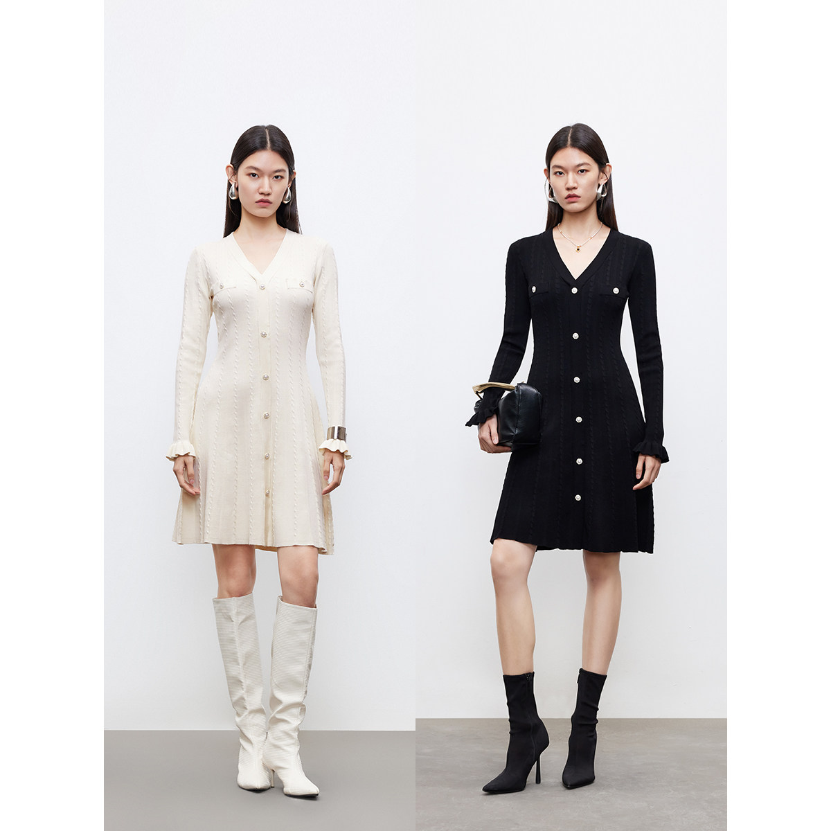 BANANA CICI2026年春季新款荷叶边V领针织衫/连衣裙