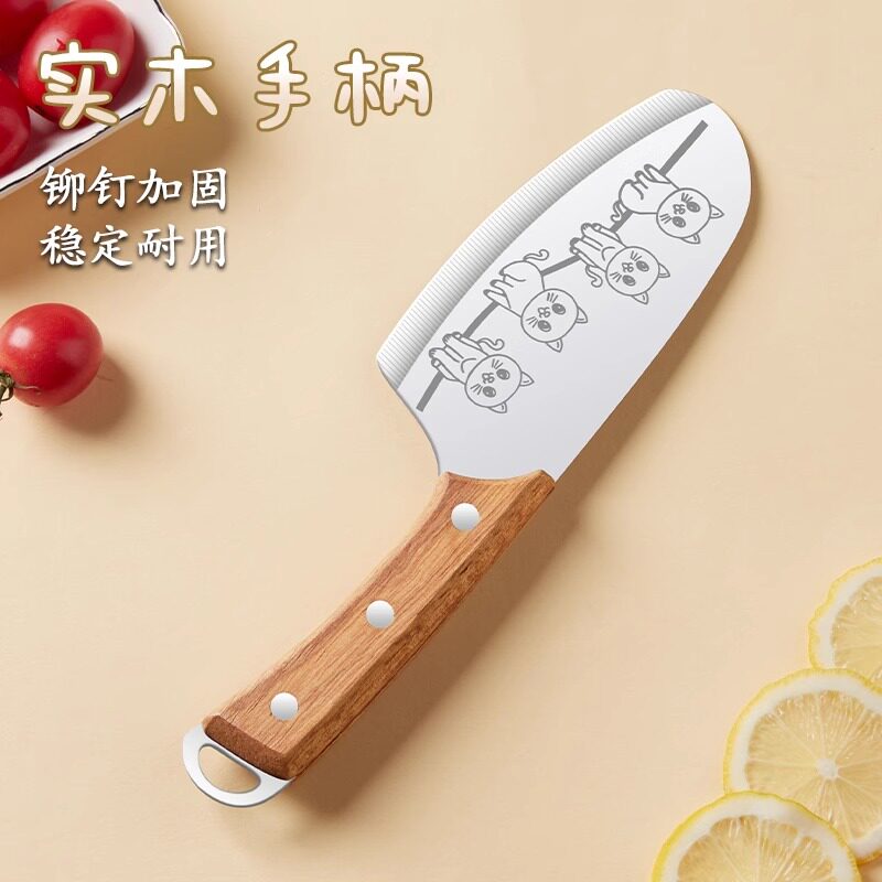 可爱猫咪小菜刀不锈钢锋利切片刀切肉刀厨房切水果刀儿童辅食刀具