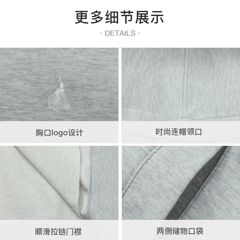三福卫衣开衫2025新款秋季连帽情侣款外套宽松慵懒风灰色上衣女装