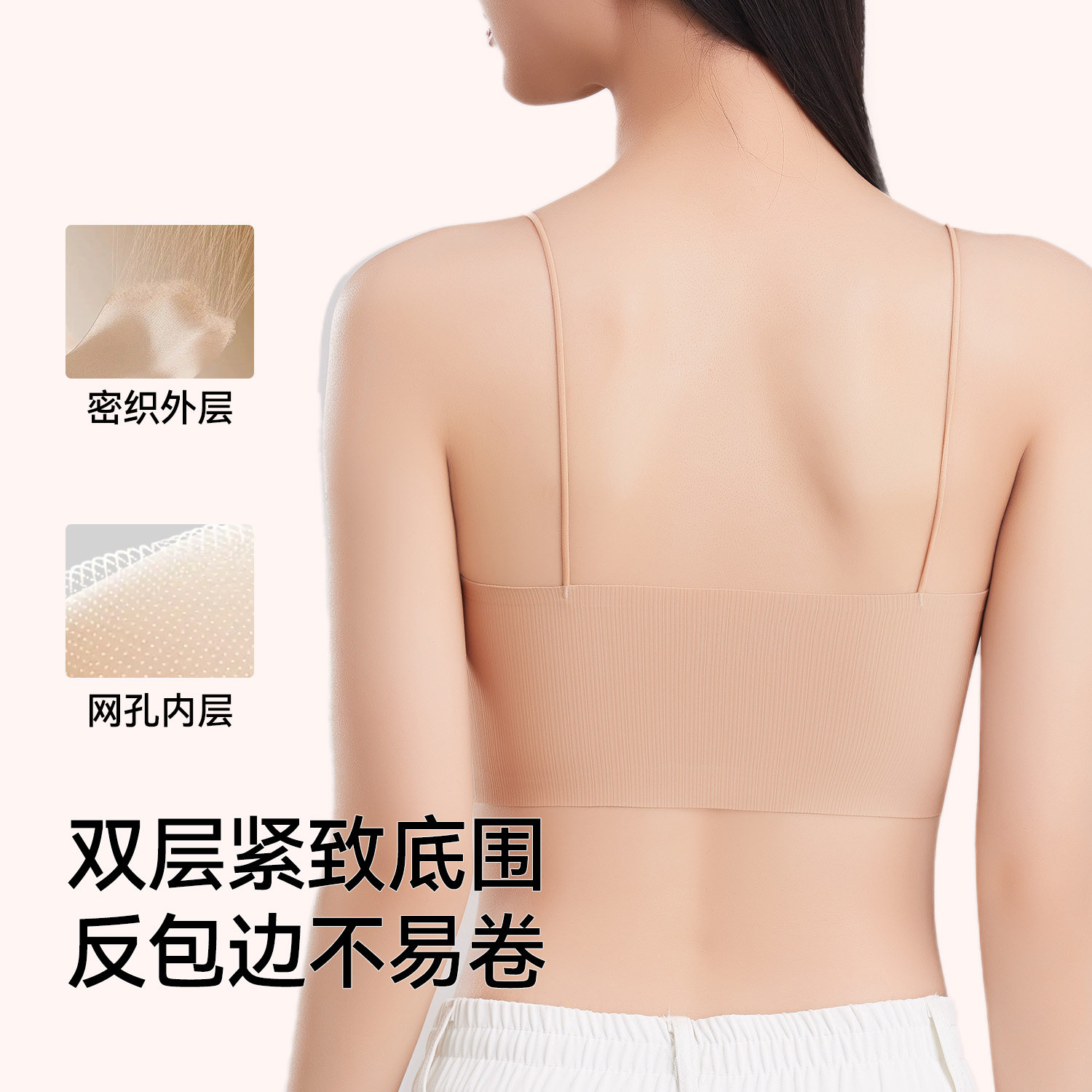 无痕美背抹胸内衣女小胸聚拢可外漏细肩带一体固定杯背心式文胸罩