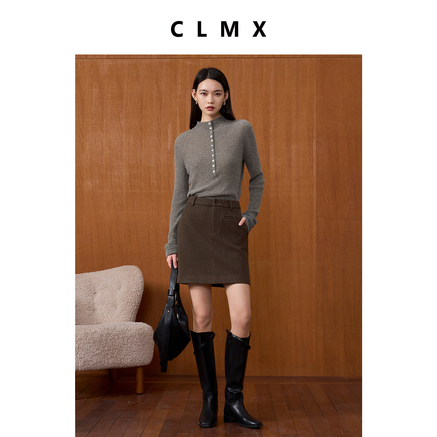 CLMX时髦肌理感半身裙亲肤厚实粘纤腈纶混纺花呢面料秋冬通勤短裙
