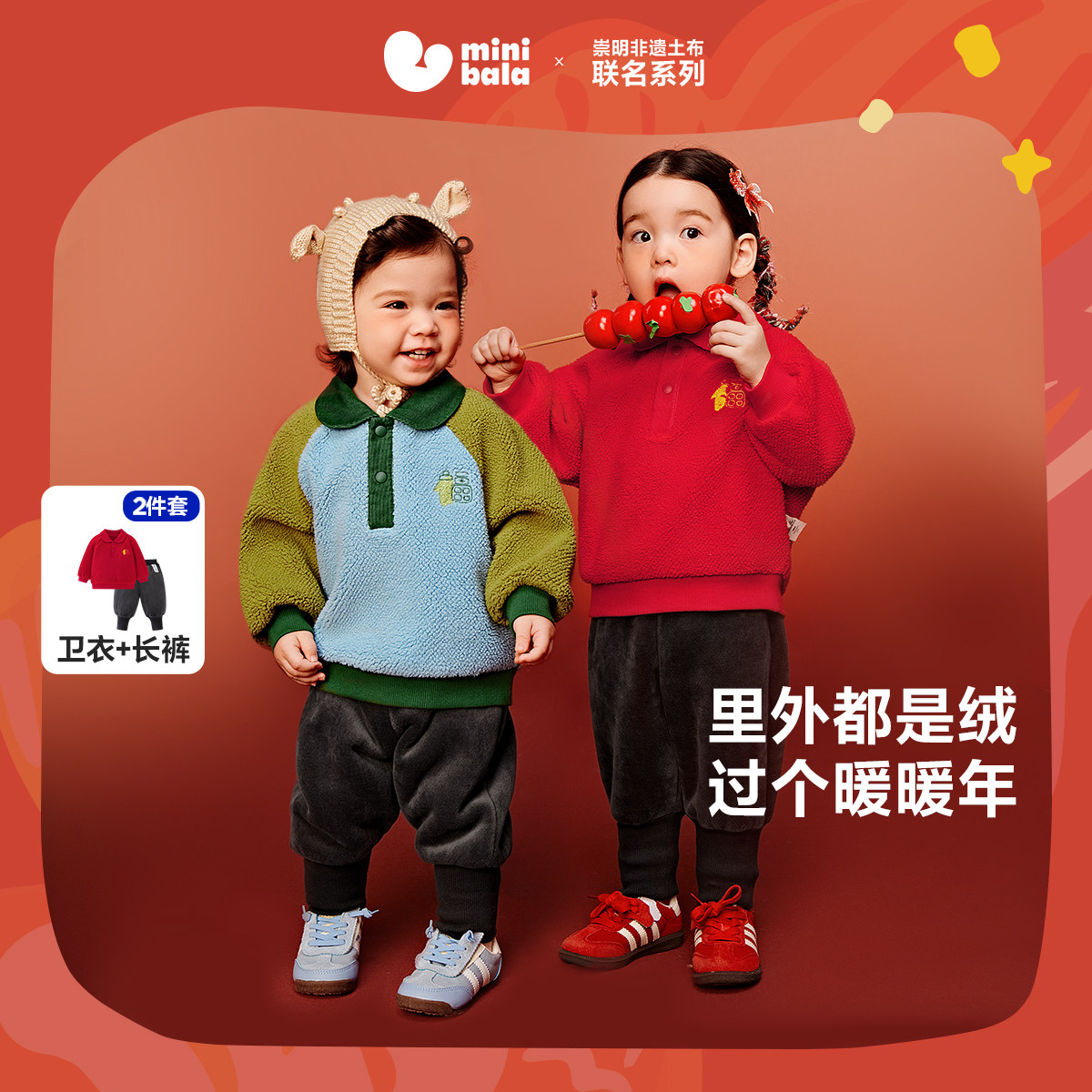 迷你巴拉巴拉长袖套装男女童宝宝卫衣长裤红色两件套婴儿衣服萌趣