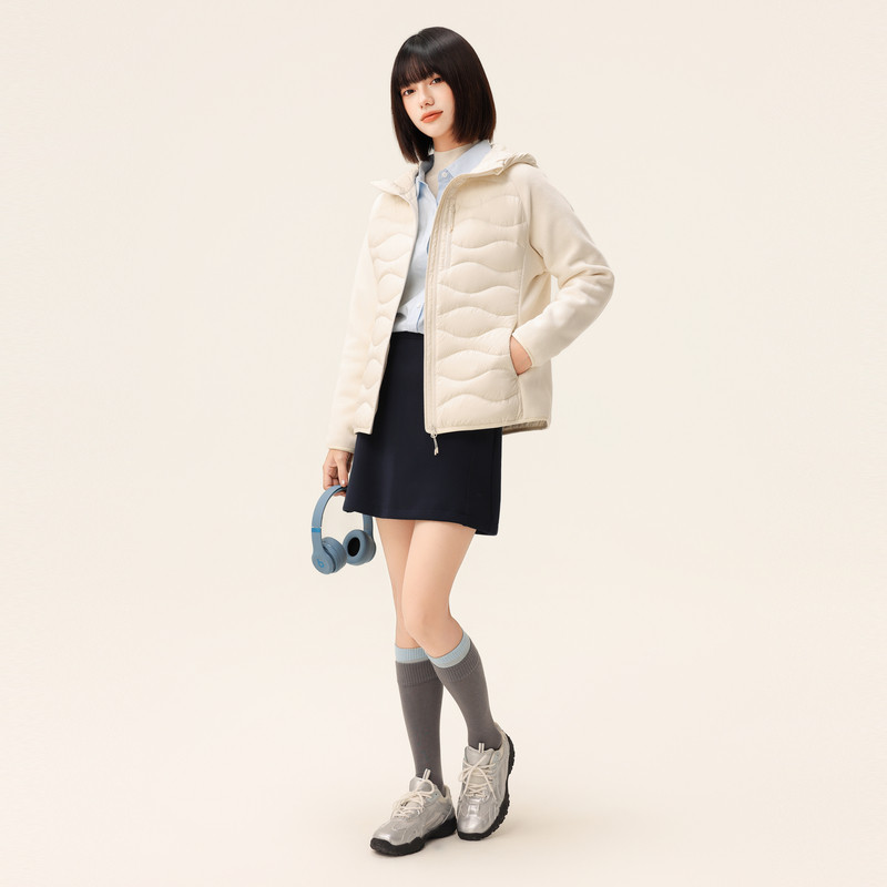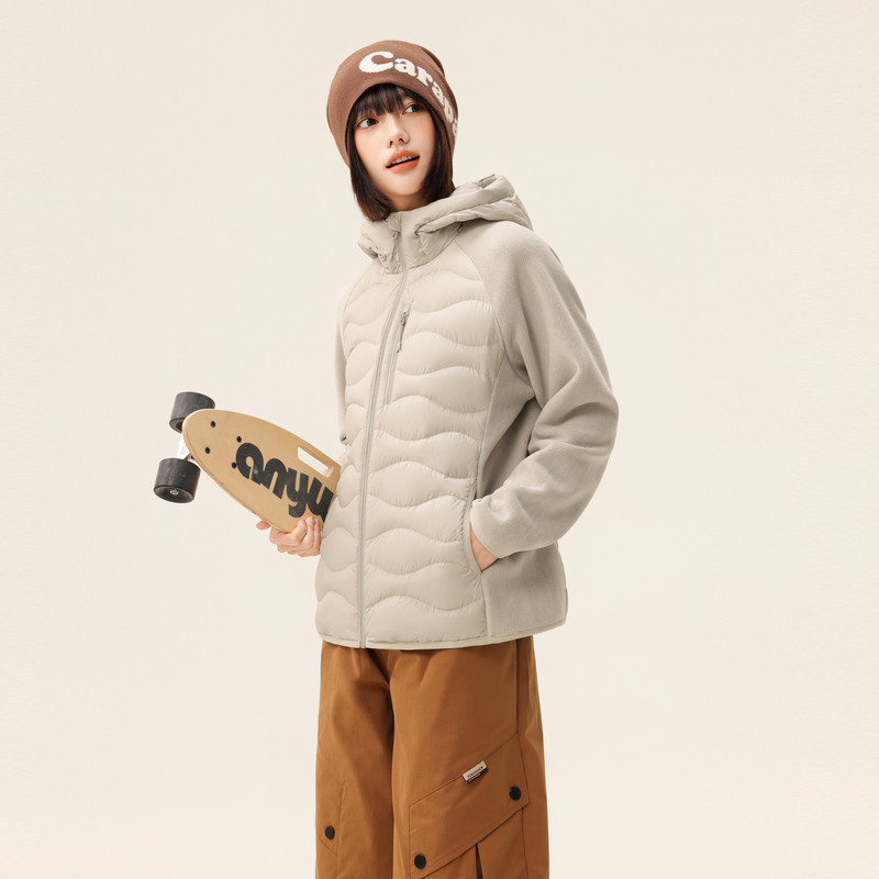 雪中飞2025冬新款连帽拼接鹅绒羽绒服女款轻薄高智感通勤户外保暖