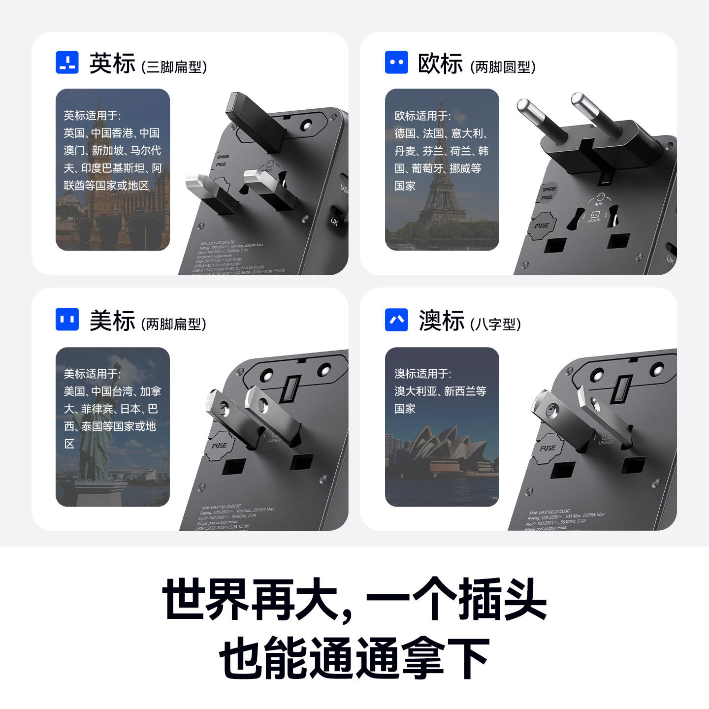 奥睿科全球通用旅游转换插头100W快充usb旅行插座官方正品旗舰