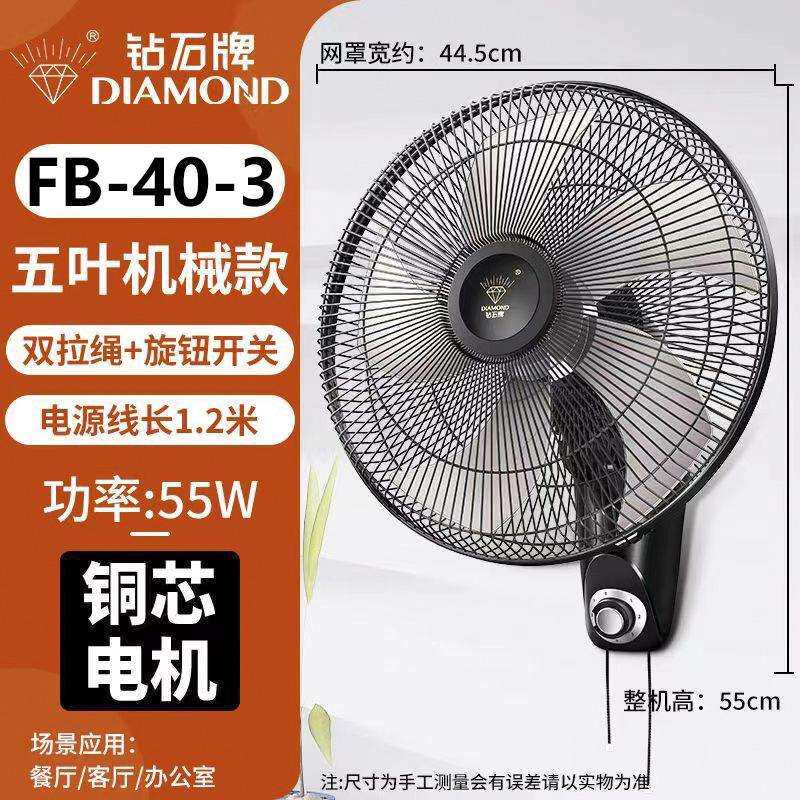 钻石牌电风扇壁扇家用遥控定时摇头风扇宿舍墙壁挂式扇拉绳挂壁扇