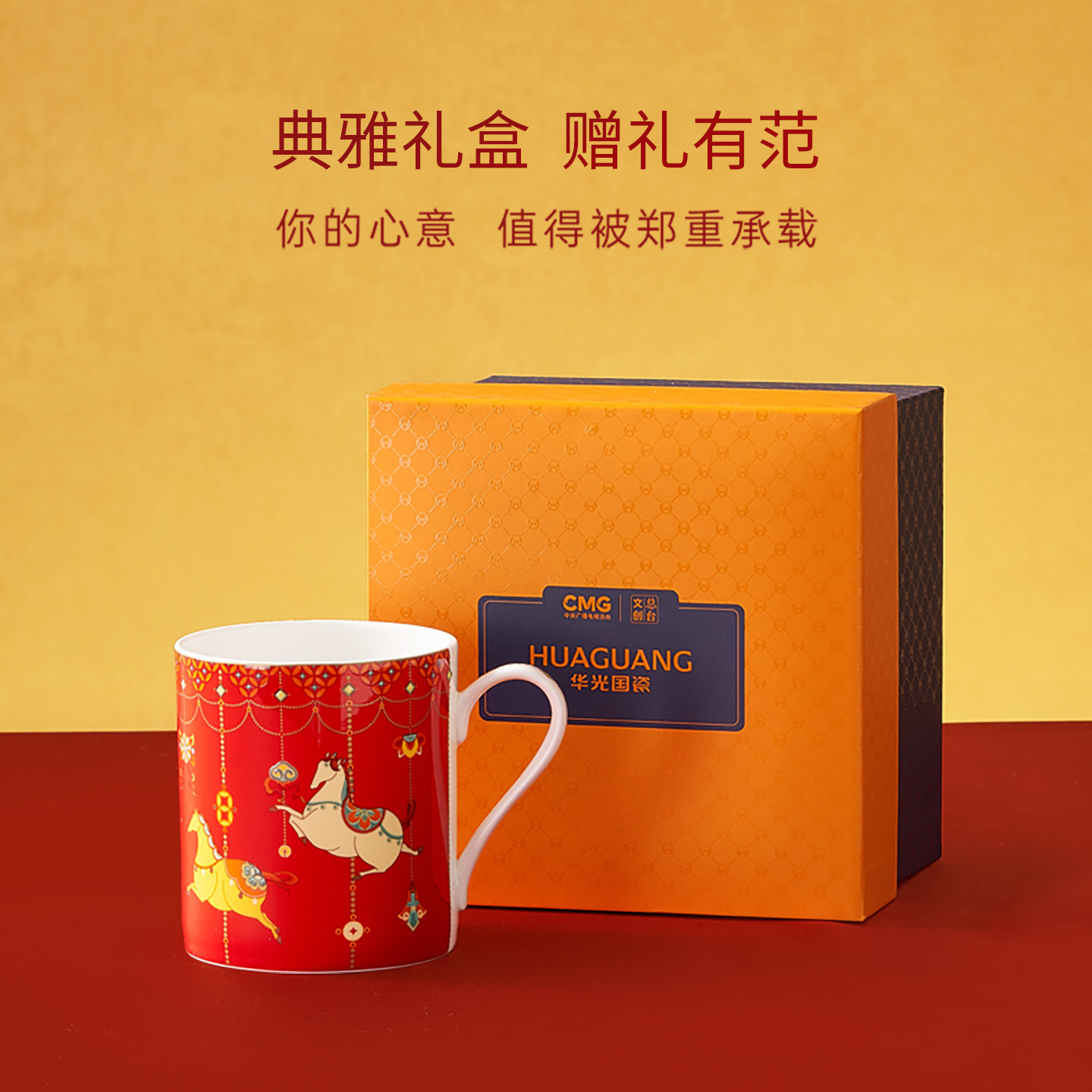 华光国瓷马年文创生肖福礼骨瓷水杯马克杯茶杯中式新年伴手礼韶华
