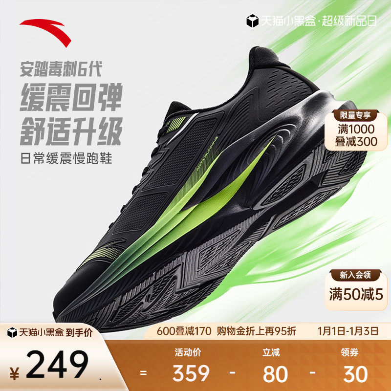 安踏毒刺6代丨缓震回弹防泼水跑步鞋男鞋冬季防滑耐磨软底运动鞋