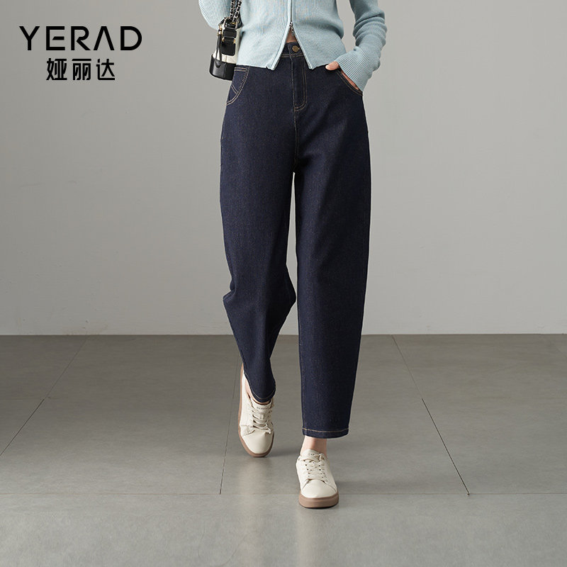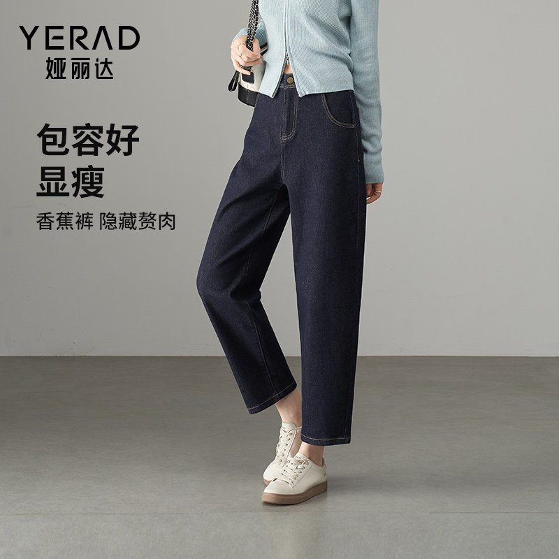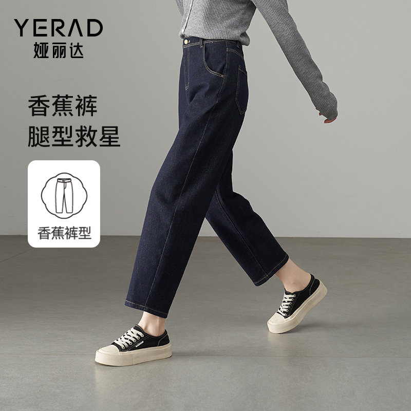 娅丽达不易掉色镰刀裤女2025秋季款宽松牛仔香蕉裤时髦小个子女裤