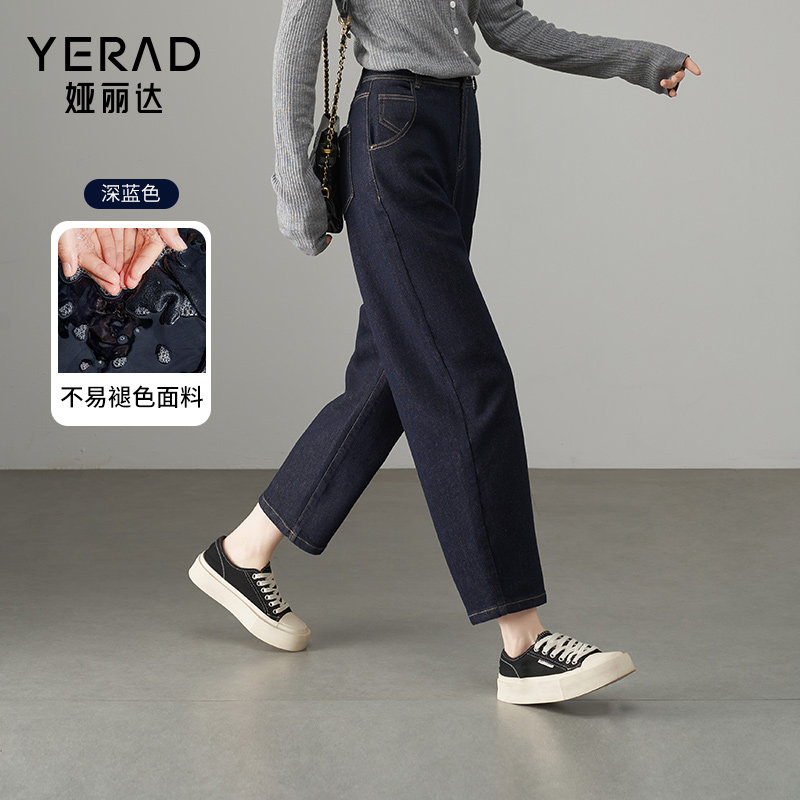 森柔牛仔|森马牛仔裤女磨毛长裤女士潮流秋休闲简约小直筒裤时尚