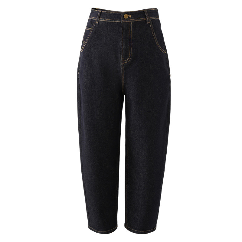 欧货加绒加厚牛仔裤女冬季新款大码胖mm梨形身材小个子直筒阔腿裤