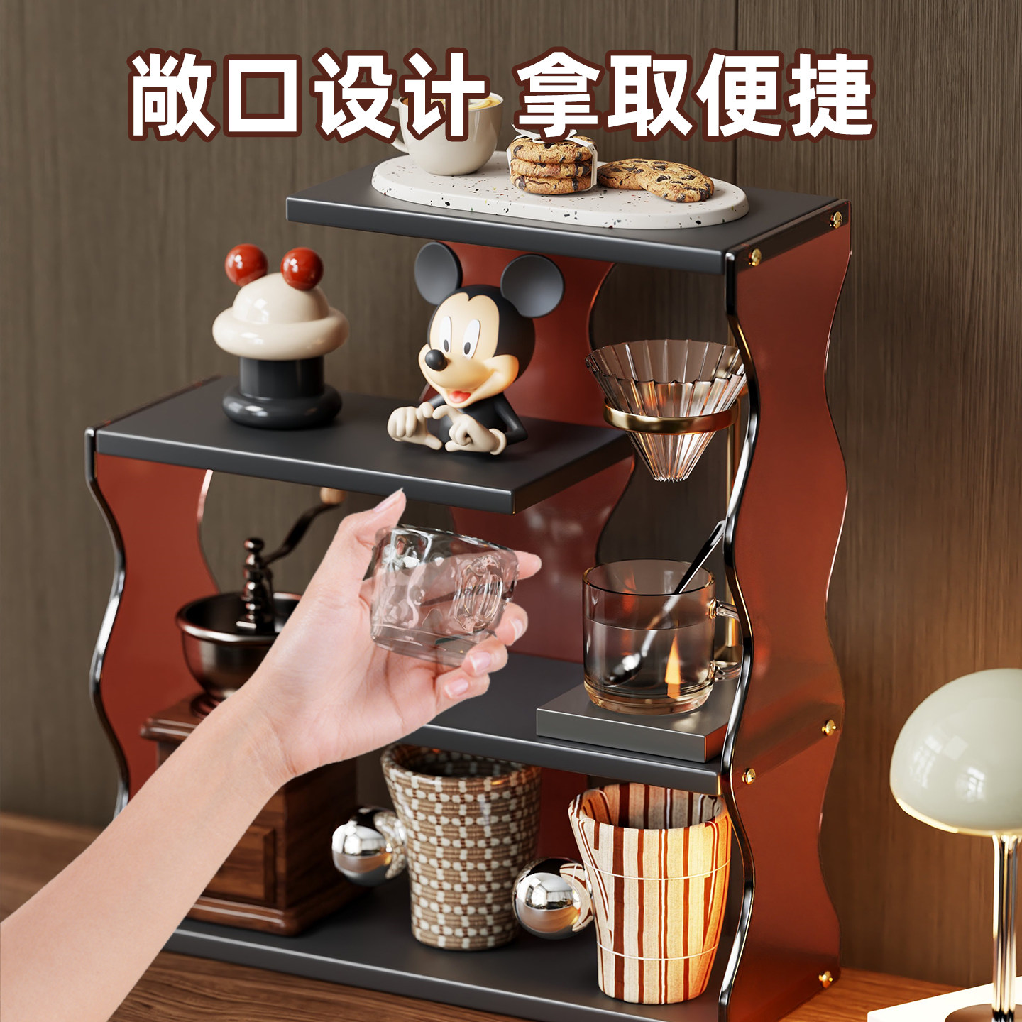 杯子收纳置物架桌面高级感轻奢杯架家用台面茶杯放置架黑色高颜值