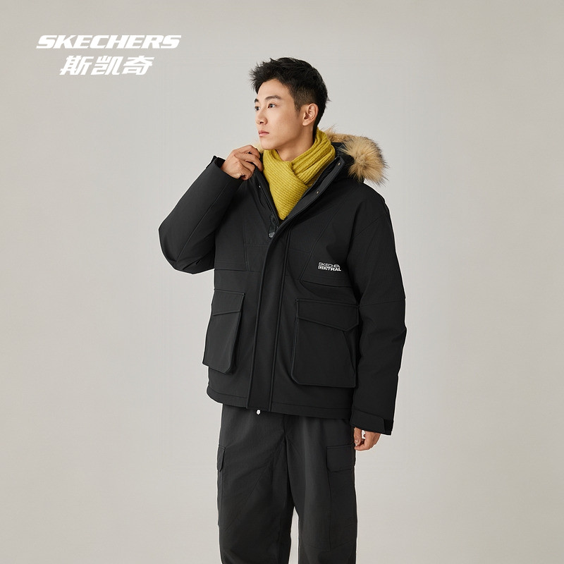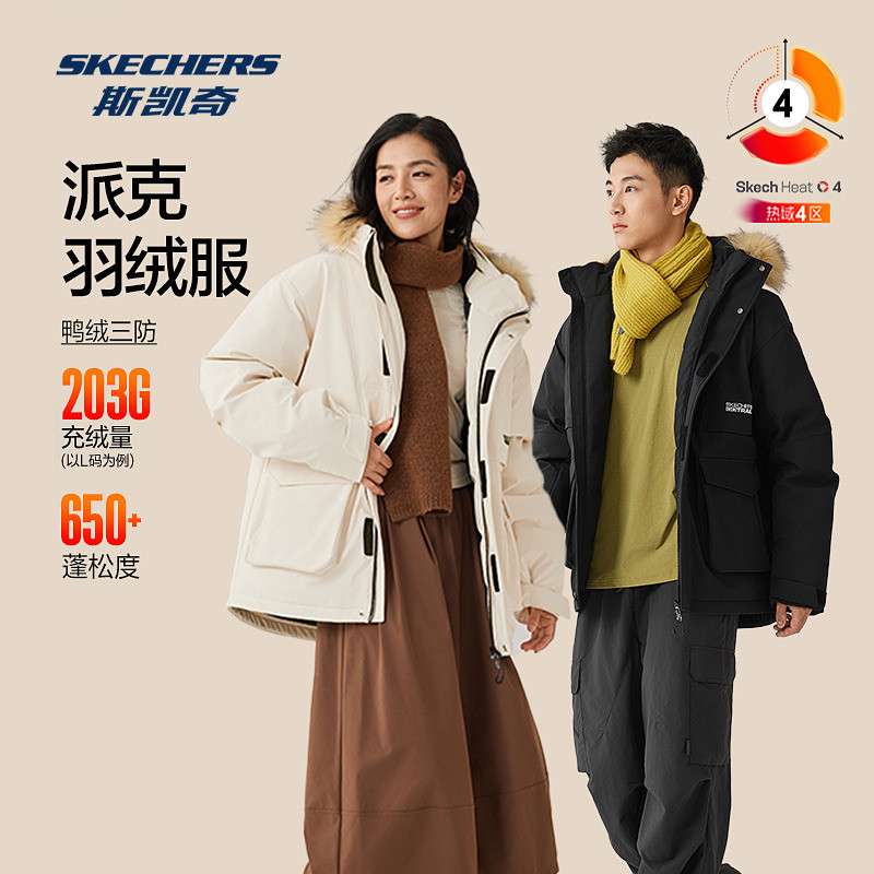 斯凯奇官方outlets羽绒服新款男女抗皱保暖御寒派克羽绒外套