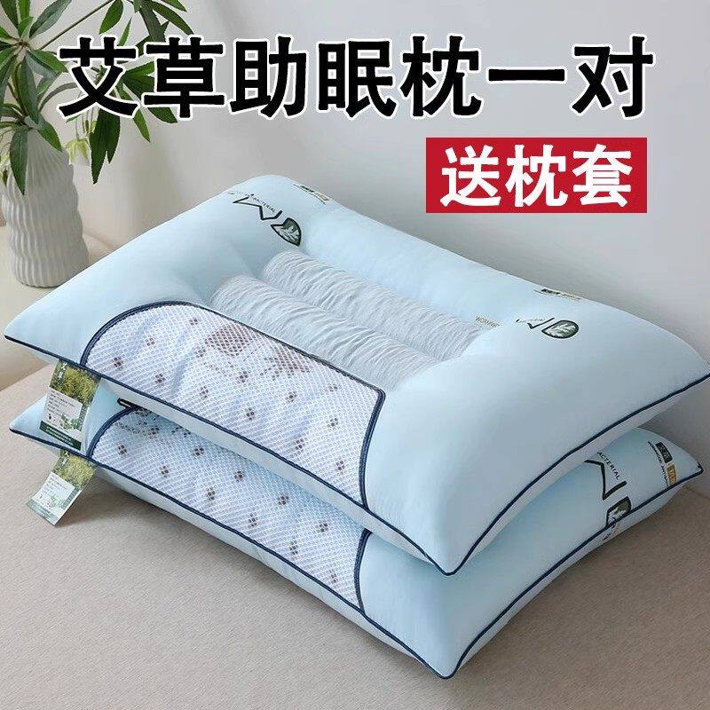 艾草决明子枕头套和枕芯一套家用一对枕套护颈椎助睡眠整眠成人装