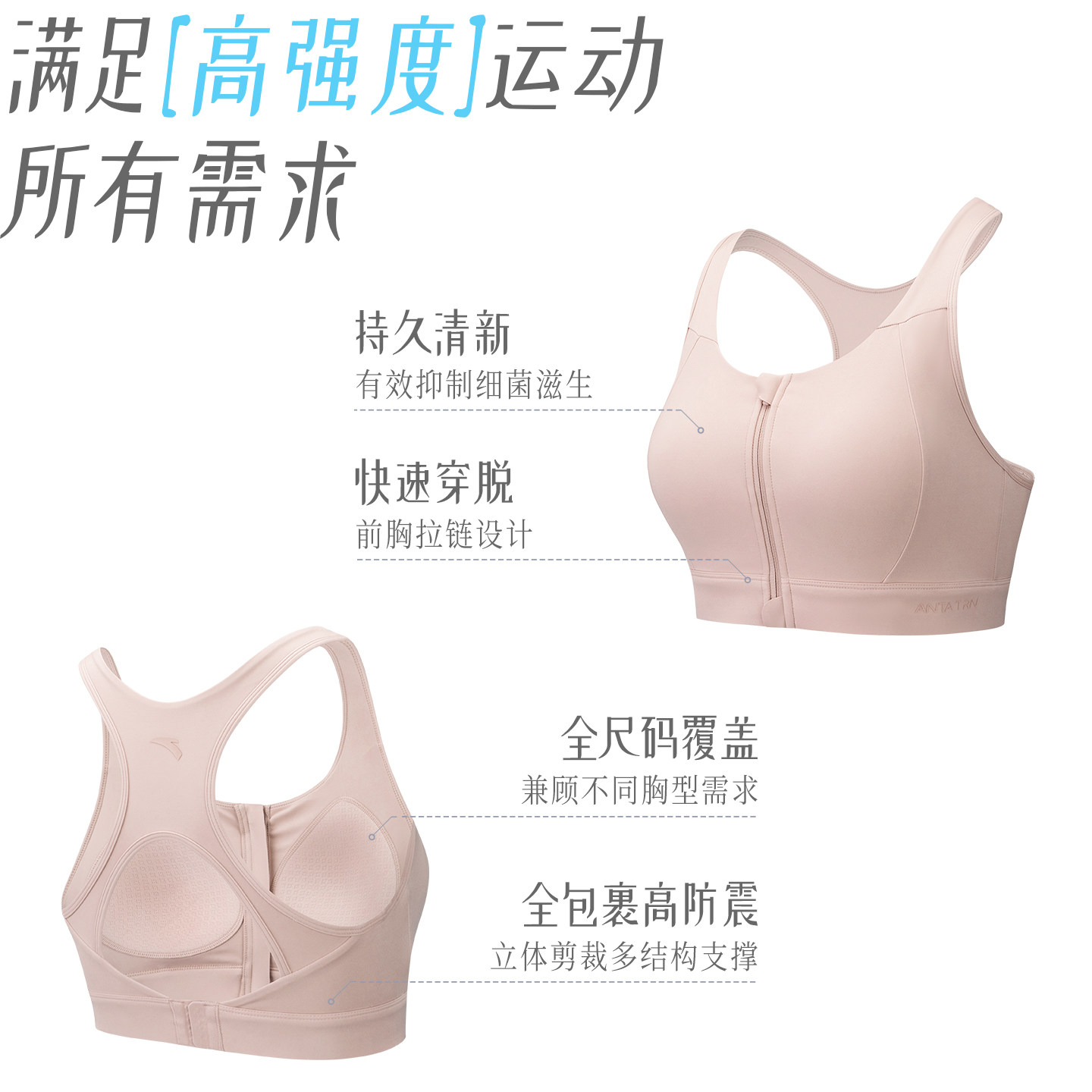 安踏超模BRA丨高弹前拉链运动背心女高强度跑步训练瑜伽文胸内衣