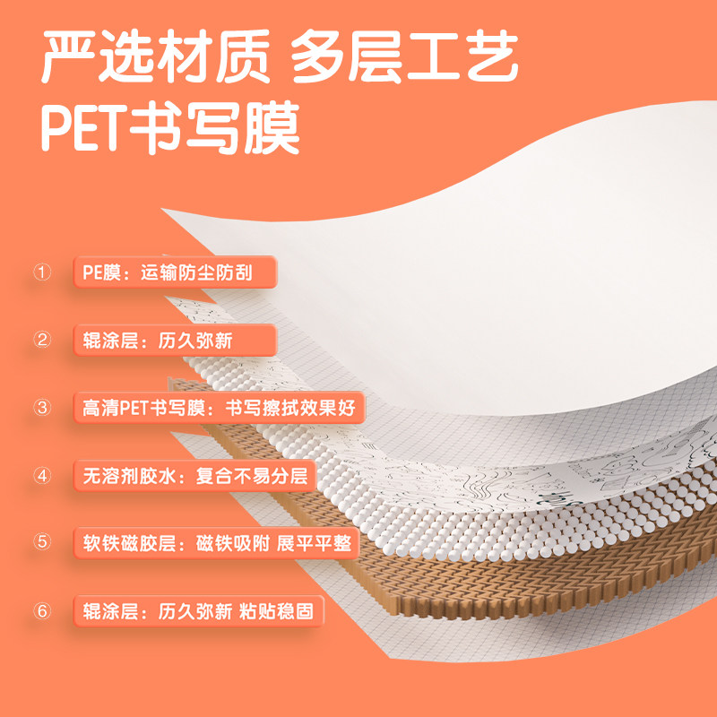 得力白板墙贴家用可移除不伤墙软白板教学水笔记事板儿童涂鸦画板墙上磁性照片贴片写字板可擦写磁铁