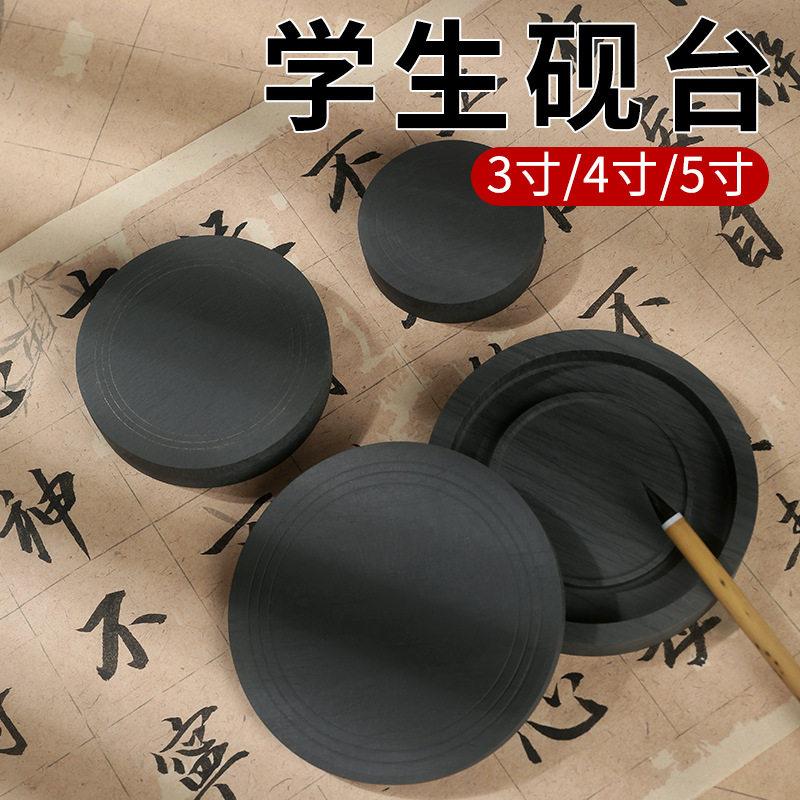 原石罗纹砚台书法专用带盖保湿墨盒学生书法练习毛笔研墨磨墨蘸墨墨碟文房四宝3寸4寸5寸防蒸发老师推荐