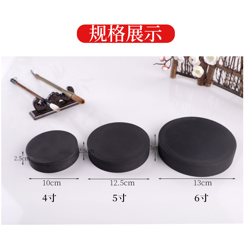 红墨轩罗纹砚砚台天然原石砚台4寸5寸6寸带盖文房四宝端砚安徽歙砚墨池墨碟墨盘墨碗墨盒墨海圆盘装墨工具