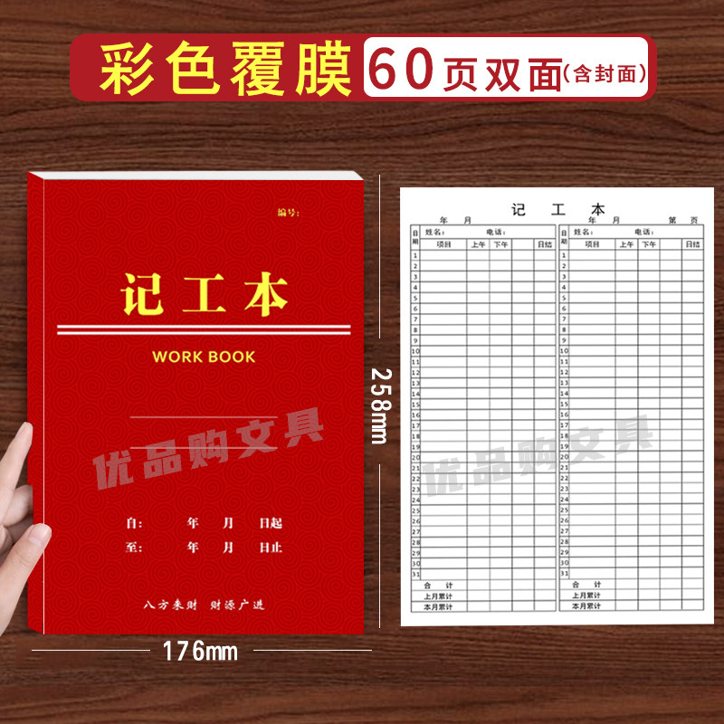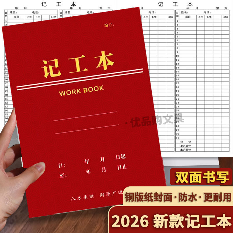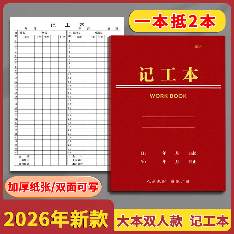 新款记工本记工薄临时工出勤登记薄个人31天签到本员工上班签到表