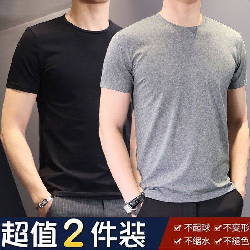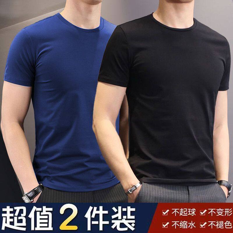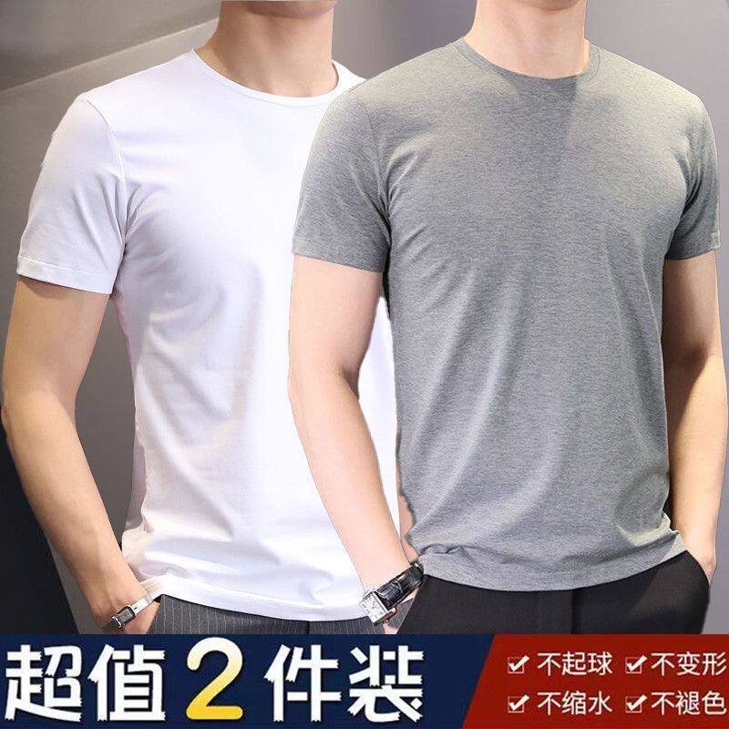 男士纯色白色短袖t恤大码夏季韩版修身潮流圆领半袖体恤黑色休闲